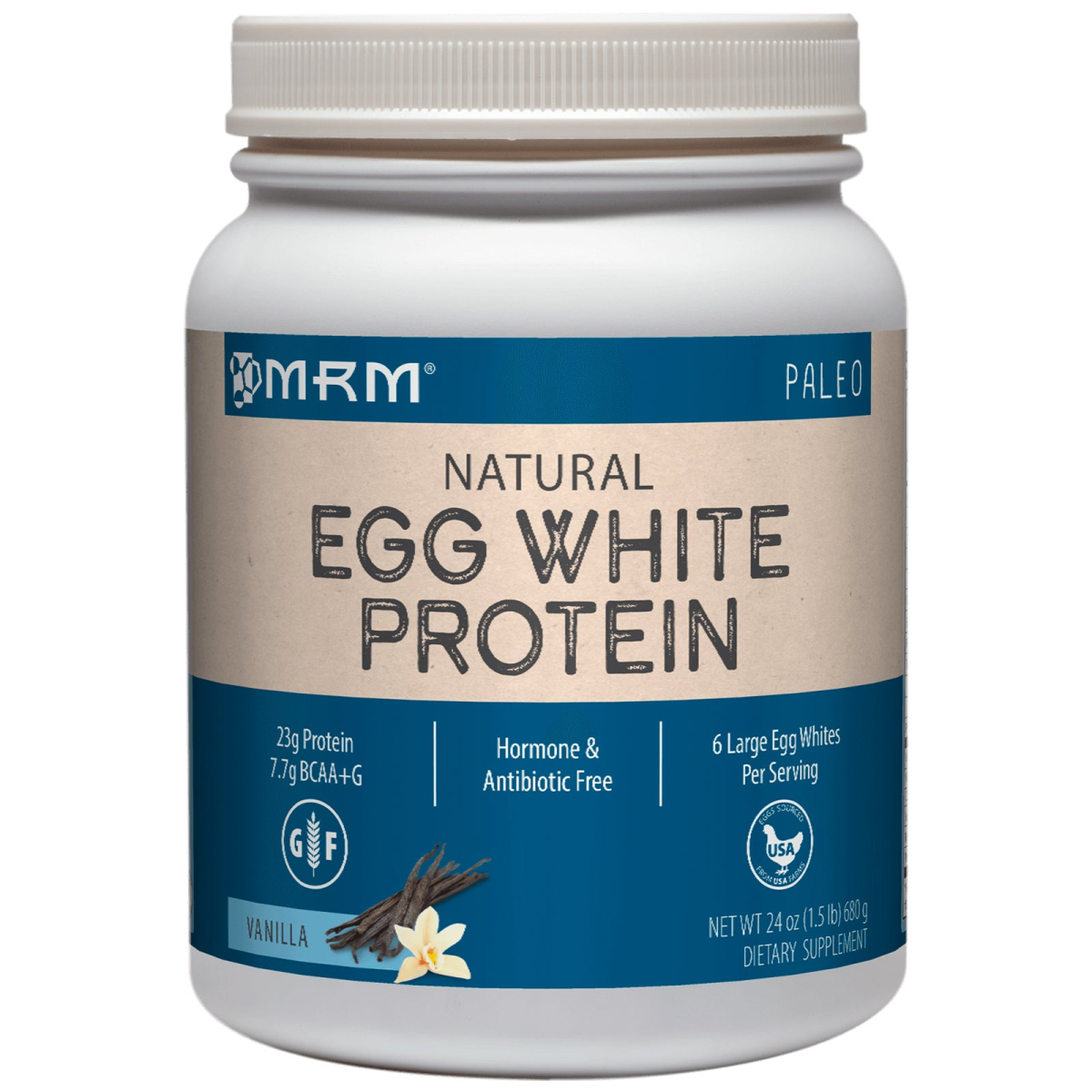Paleo 23 g Protein 7.7 g BCAA+G Hormone & Antibiotic Free 6 Large Egg Whites Per Serving Gluten Free GMP - Good Manufacturing Practices - Produced in a Certified Facility Egg protein has the highest biological value because of its combination of essential amino acids and sulfur containing proteins, all of which can be used by the body for natural, healthy muscle maintenance. In addition, egg whites are high in protein and contain no cholesterol or fats. This helps you achieve your protein needs without worrying about taking in unwanted components. MRM’s Natural Egg White Protein is perfect for all age groups and active lifestyles. It offers a source of protein that is 100% derived from egg whites. Produced from a superior extraction process, our egg white concentrate provides a foundation of essential amino acids that mixes easily and tastes better than traditional egg white proteins. Natural Egg White Protein contains at least 23 grams of protein per serving and NO artificial flavors, colors, or sweeteners. Promotes natural, healthy muscle maintenance. No artificial flavors, colors, or sweeteners. Hormone and Antibiotic Free. Zero cholesterol or fat.