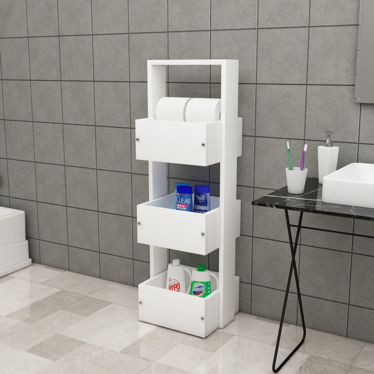Multi-Purpose Storage Cabinet Shelf Mita - a modern and versatile solution for all your storage needs. With 3 open shelves and a sturdy 18mm thick particleboard construction, this shelf offers ample space and durability. Its water-resistant, PVC-edge banded surface is perfect for any room.