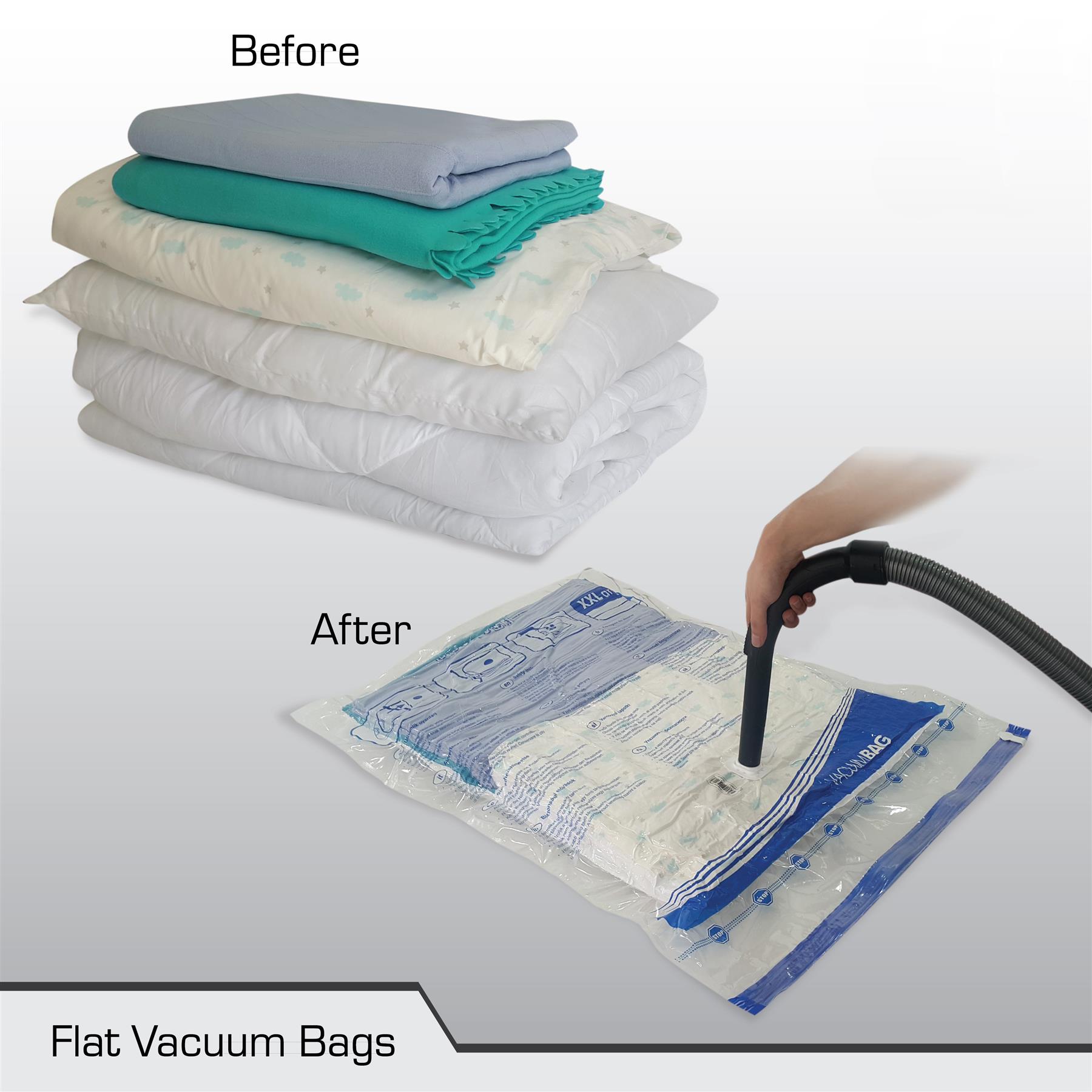This vacuum bag can provide ultimate protection for bedding, sweaters & seasonal clothes when storing away as the airtight/watertight seal will prevent mould, moisture, musty odours, moths, dirt or dust. Simply use any household vacuum with a hose to remove the air and reduce the bag volume by up to 75%.