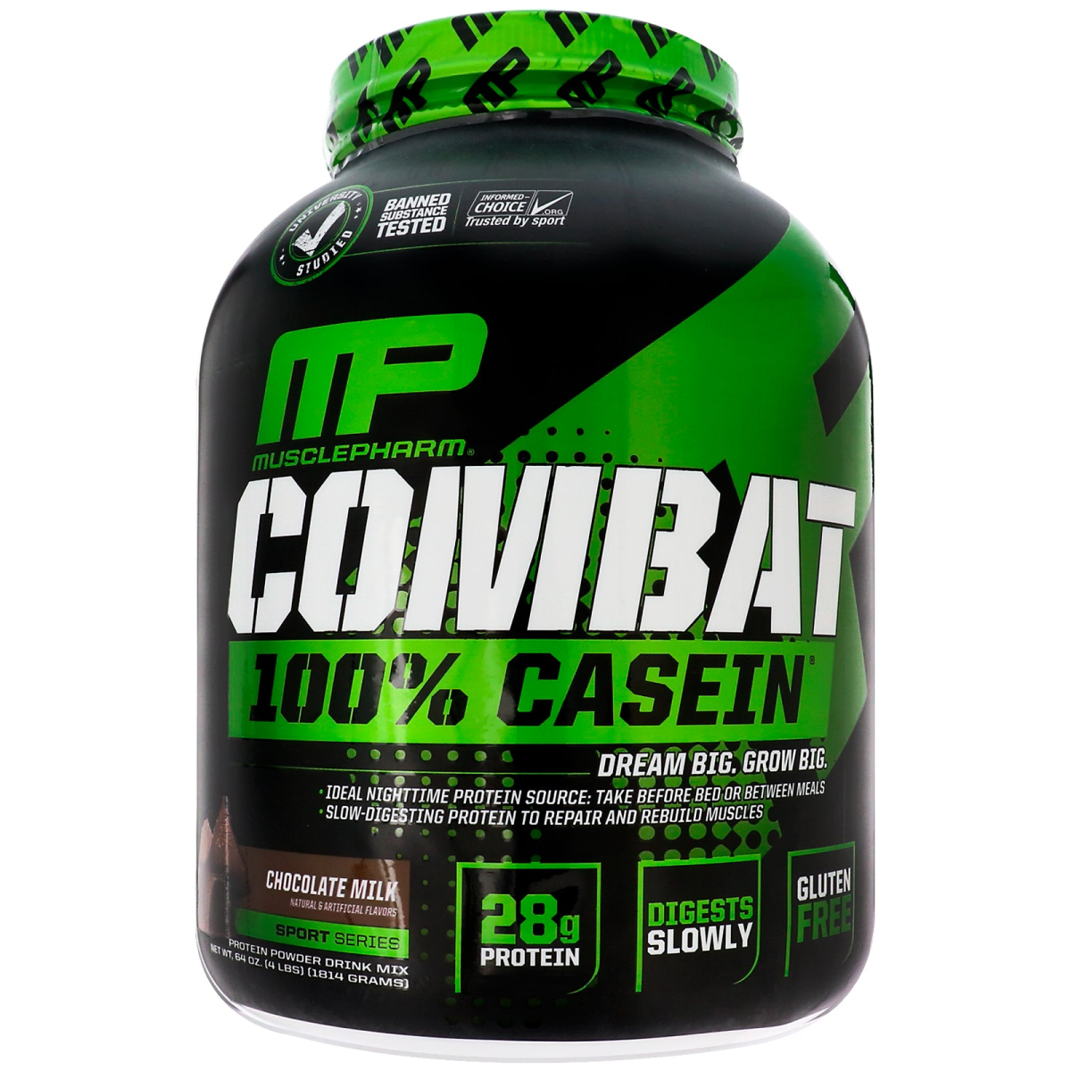 University Studied Banned Substance Tested Informed-Choice Trusted by Sport Dream Big. Grow Big. Ideal Nighttime Protein Source: Take Before Bed or Between Meals Slow-Digesting Protein to Repair and Rebuild Muscles Natural & Artificial Flavors Sport Series Protein Powder Drink Mix 28 g Protein Digests Slowly Gluten Free Made in a cGMP Registered Facility Real Athletes. Real Science. Performance Build Muscle Nighttime Protein Source Recovery Sports Science Institute 100% Micellar Casein Protein MusclePharm's Combat 100% Casein protein delivers sustained, slow-digesting protein and amino acids. We start with the best micellar casein protein available, then combine it with a digestive enzyme blend to deliver quality muscle-promoting proteins. While you may sleep, your muscles are getting fed - and fed well. Key Features 28 Grams of the Ideal Nighttime Protein Source Slow-Digesting to Support your Muscles While you Sleep 60 mg of Digestive Enzymes Banned Substance Tested No Artificial Dyes or Colors Gluten-Free We Live It. We Prove It. Our Researchers and Physician Have Performed Over 20 Clinical, University & Independent Studies 22 Million Finished Products Certified as Banned-Substance Tested by Informed-Choice Above-and-Beyond Industry Standards