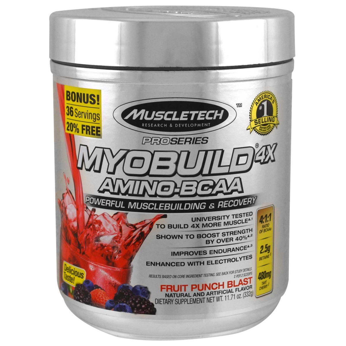 Muscletech, MyoBuild 4X Amino-BCAA, Fruit Punch Blast, 11.71 oz (332 g)