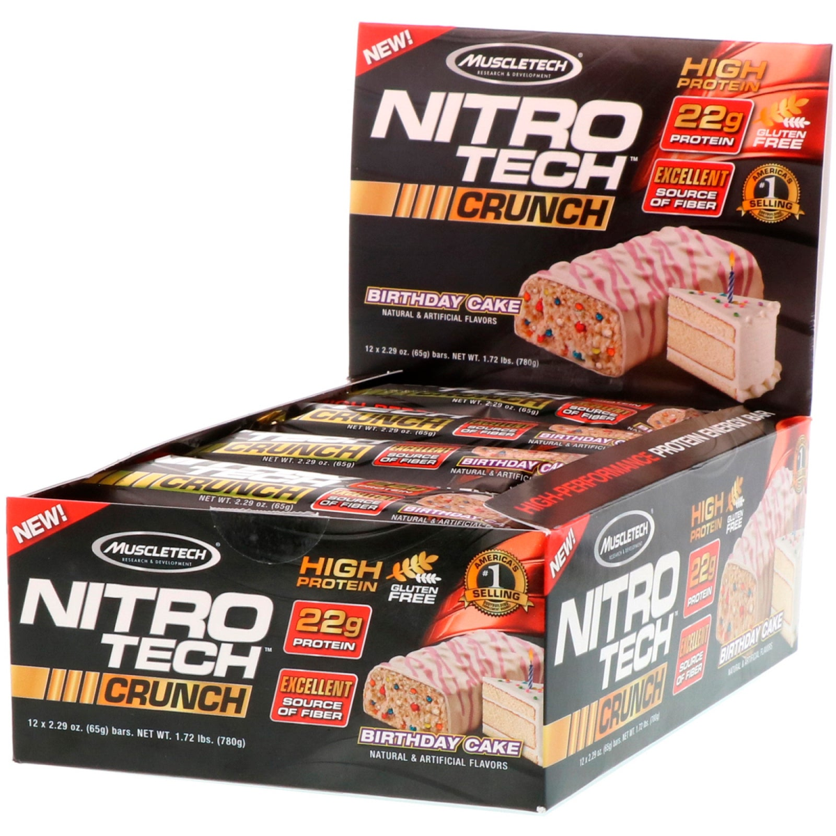 Muscletech Nitro Tech Crunch Bars Birthday Cake 12 Bars 2.29 oz (65 g) Each