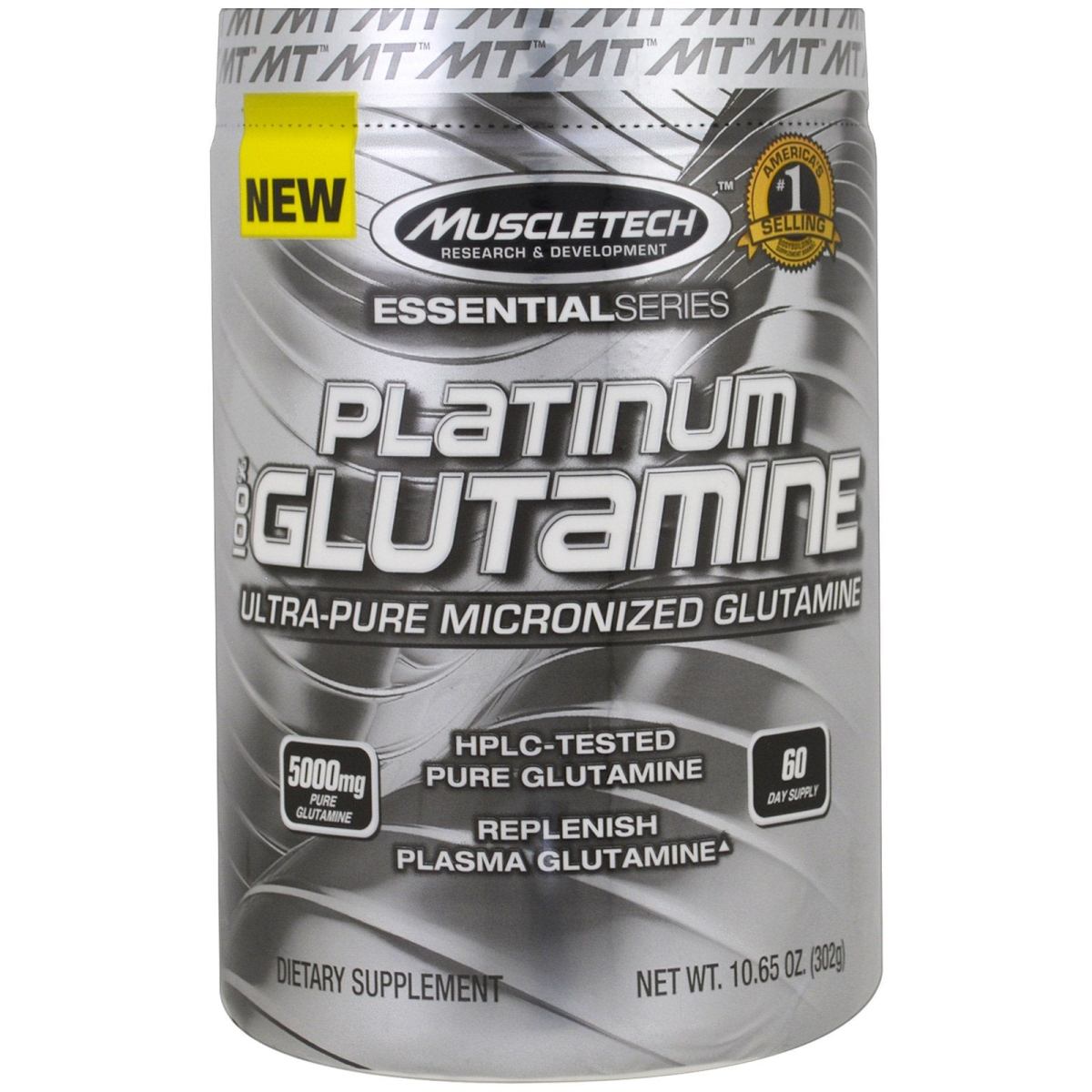Research & Development Essential Series America's #1 Selling - Bodybuilding Supplement Brand ‡ Ultra-Pure Micronized Glutamine 5000 mg Pure Glutamine HPLC-Tested Pure Glutamine Replenish Plasma Glutamine 60 Day Supply Dietary Supplement The Most Powerful Supplements on Earth. At MuscleTech, our researchers are passionate amount supplements. Our mission is to develop the most scientifically advanced and effective supplements to help you build muscle and strength, lose weight, and improve athletic performance. Thanks to our millions of loyal customers, we are fortunate to be the most-awarded and best-selling sports nutrition brand over the past 20 years. Many supplement companies do not disclose their ingredients, and don't invest in science and research, or quality control. We are different. MuscleTech invest millions in product research and development, and quality control- and our supplement facts always tell you exactly what you are getting: The Most Powerful Supplement on Earth! #1 Most Award Winning Sports Nutrition Brand #1 America's Selling Bodybuilding Supplement Brand ‡ #1 Fastest Growing Sports Nutrition Brand - Total Average Yearly Sales Growth Since 1995 20 Years of Excellence U.S. Military #1 Selling Bodybuilding Supplement Brand Tens of Millions of Customers Made in the USA from Domestic and International Ingredients #1 Most Clinical Studies in Science Formulated with Clinical Dosed Key Ingredients Leader in Science - A Portion of Every Dollar to More Research No.1 Patents- Most Patents Awarded & Pending #1 in Quality Control over $10 Million Invested cGMP Manufactured - Manufacture according to cGMP standards, as is required for all dietary supplements. Guaranteed Banned Substance Free Full Disclosed Ingredients No Proprietary Blends MuscleTech is the Leader in Science with a Multi-Million Dollar Research Budget - A portion of every dollar spent on MuscleTech supplements is allocated toward scientific research to discover new and more effective ways to increase lean muscle and strength, and improve athletic performance. In fact, Team MuscleTech researchers have collaborated with researchers at over 20 universities and research facilities around the world to study the various key ingredients found in our powerful formulas. Platinum 100% Glutamine - Platinum 100% Glutamine supplies 5 g of glutamine per serving, which works to rapidly replenish the glutamine used during training. Glutamine is the most abundant non-essential free amino acid in your body- more than 20% of the total circulating amino acids in your body are glutamine. Your muscles are especially high in glutamine, making it extremely important for muscle metabolism. When you're training hard, your muscles can lose up to 5% of their glutamine stores, so you need to replace them-fast! Glutamine helps your body control catabolism by acting as a free nitrogen donor to help your muscles build the other amino acids they need to recover quickly. Glutamine also helps support increased cell volume, glycogen replenishment and protein synthesis. Platinum 100% Glutamine is increased cell volume, glycogen replenishment, and protein synthesis. Platinum 100% Glutamine is perfectly tasteless and odorless, and mixes effortlessly on its own or into any other product you're already using. This nin-stimulant formula stacks perfectly and can be used day or night. ‡MuscleTech is America's #1 Selling Bodybuilding Supplement Brand based on cumulative wholesale dollar sales 2001 to present.