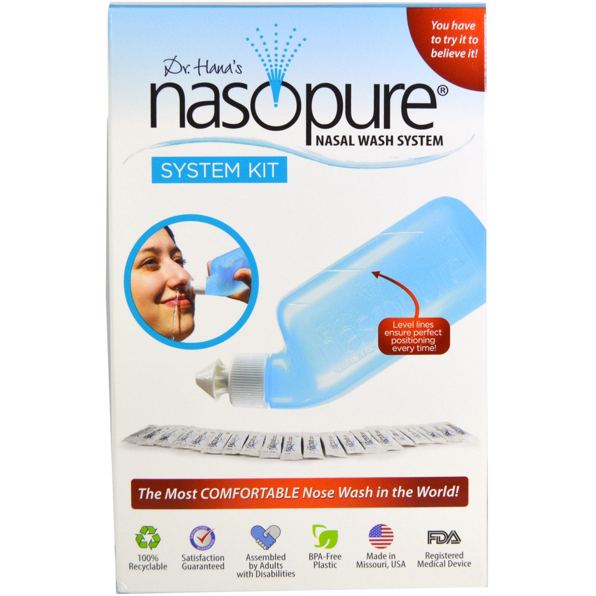 The Most Comfortable Nose Wash in the World! You Have to Try It to Believe It! Level Lines Ensure Perfect Positioning Every Time! BPA-Free Plastic FDA Registered Medical Device For Ages 2 to 102 What makes nasopure different? Natural Head & Neck Position Flushes Along the Nasal Floor, Not Upward Encourages Natural Sinus Drainage Ideally Buffered Salt for Soothing Comfort Safe for Ages 2 and Older Hypertonic Solution Can Be Used Over Several Days Complete Control Over Pressure and Flow Resealable Cap; Great for Travel Ergonomic Design Level Lines Ensure Perfect Positioning You have to try it to believe it! Developed by pediatrician, Dr Hana so that her 2 year old patients could use a safe, easy, and comfortable nose wash! Our patented Nasopure Bottles flushes the solution along the nasal floor, resulting in a comfortable and soothing experience, avoiding the common complaints of irritation and drowning sensation. The Magic Is In The Mix! Ideally Buffered Salt Formula Reduces or eliminates burning sensation Highly Concentrated Shrinks swollen membranes Thins secretions Don't Forget To Refill! Nasopure buffered salt makes all the difference when it comes to comfort! The Nasopure Mix Gently washes, moisturizes, and cleans the nose, your personal filter. Removes allergens, dust, excessive mucus, and other pollutants pH balanced alkaline solution Simple, soothing, safe Feels great! Nasopure is ideal for... Allergies Colds & Flu Enhanced Breathing Nasal Polyps Pregnancy Rhinitis Cystic Fibrosis Deviated Nasal Septum Sinus & Ear Issues Removal of Pollen, Dust and Debris Anyone with a nose! Athletes Construction Workers Firefighters Truckers Prevention New level lines ensure perfect positioning every time! Creates The Nasopure Effect - Flushes solution along nasal floor and encourages natural sinus drainage. SalineNeti Pot, Sinus Rinse, Saline Solution, Nasal Rinse, Nasal Wash, Nasal Irrigation, Sinus Irrigation, Nasal Irrigation System, Netipot, Saline Rinse, Neti Pot Salt Neti
