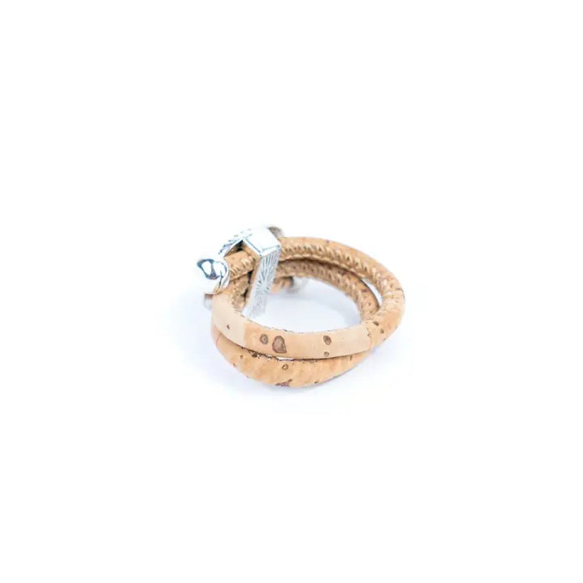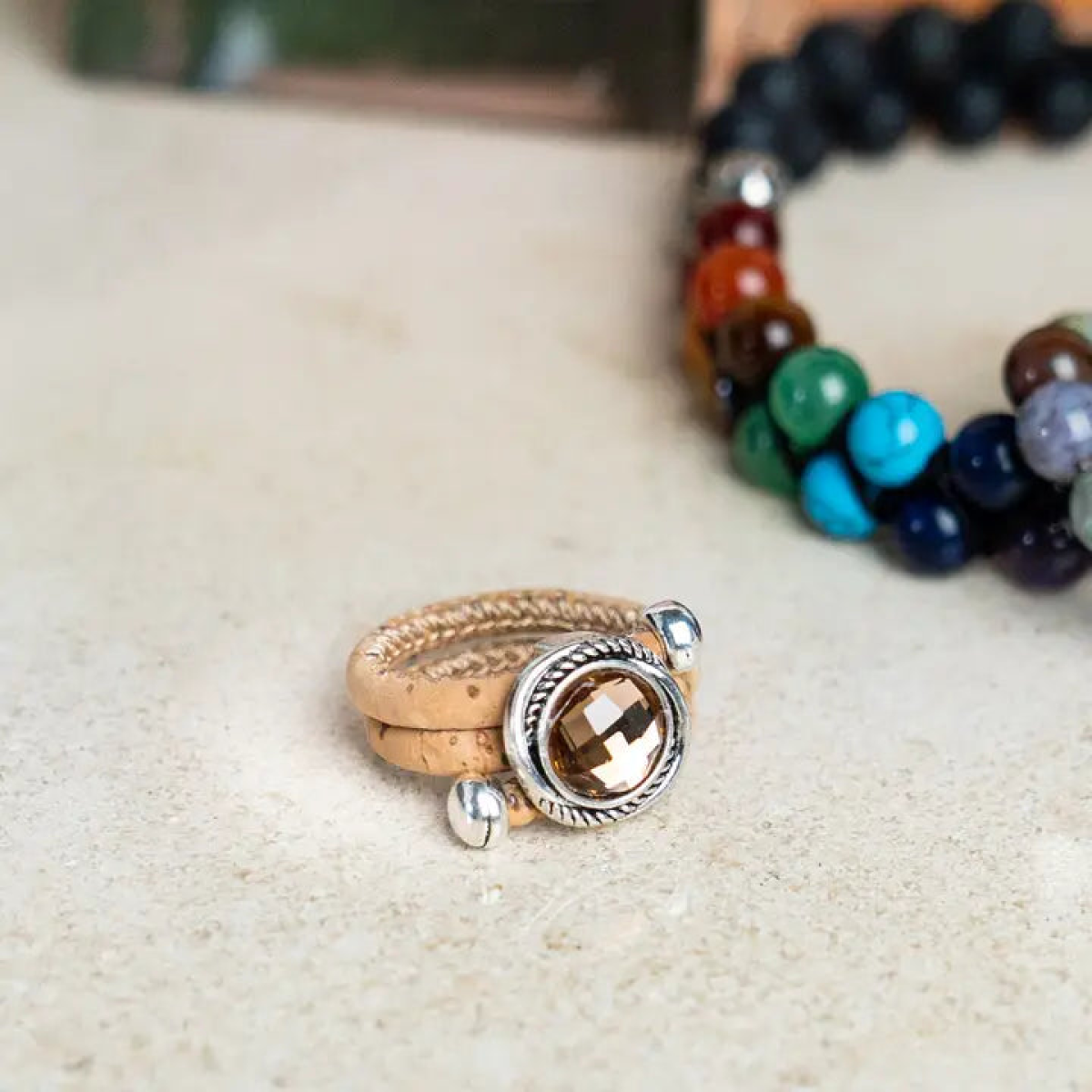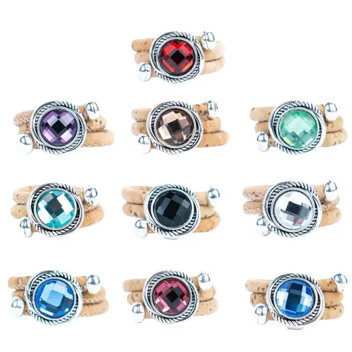 Elevate your accessory collection with our stunning series of cork rings featuring vibrant coloured plastic patches. Each ring is crafted using natural 3mm cork wire, complemented by durable alloy accessories, creating a unique blend of style and sustainability.