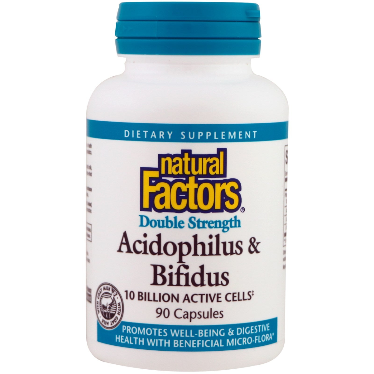 Natural Factors, Acidophilus & Bifidus, Double Strength, 10 Billion Active Cells, 90 Capsules