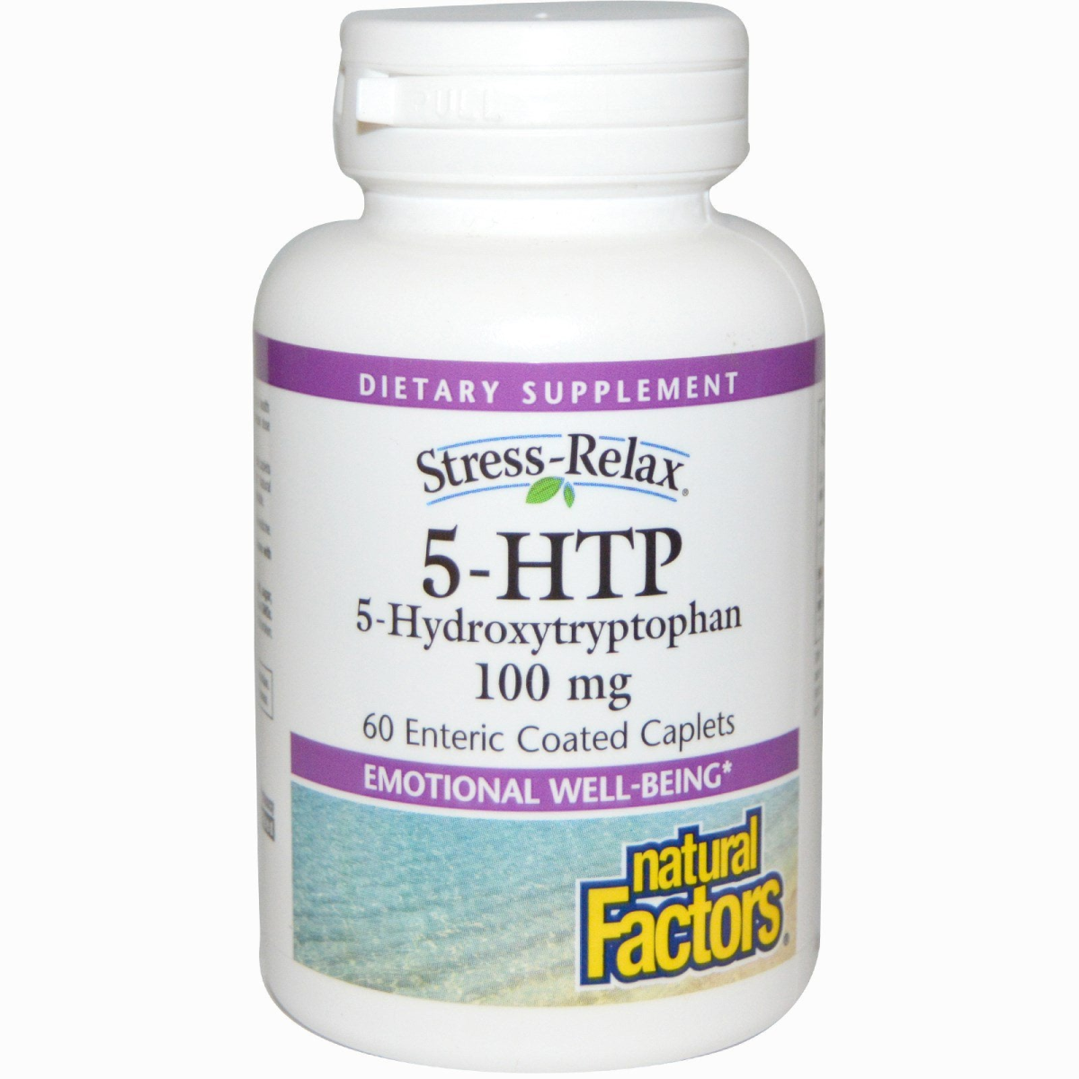 Dietary Supplement 5-Hydroxytryptophan Emotional Well-Being Purity & Potency Guaranteed Supplementing with 5-HTP provides natural support for emotional well-being, and caplets are enteric coated to minimize gastric discomfort and optimize absorption. Natural Factors amino acids are the highest quality pharmaceutical grade products available. Recommended by Dr. Michael Murray, one of the world's leading experts on natural medicine. Manufactured by Natural Factors to ensure safety and potency in accordance with Good Manufacturing Practices (GMP) of the FDA and Health Canada.