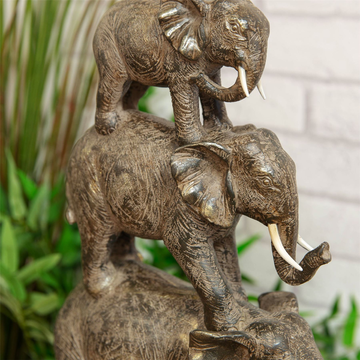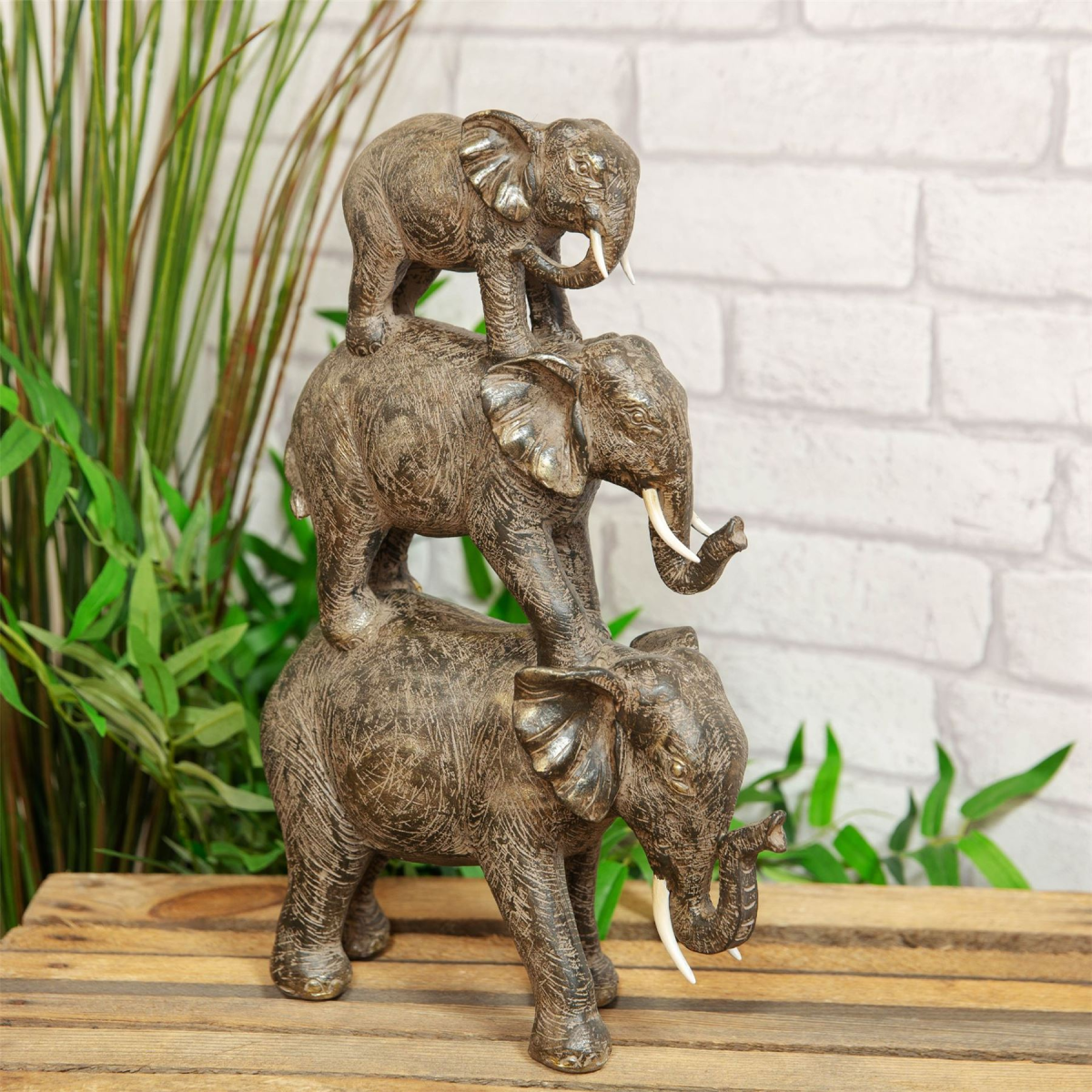 A beautiful distressed wood effect hand painted African elephant tower figurine. From Naturecraft - the one stop shop for wildlife enthusiasts.