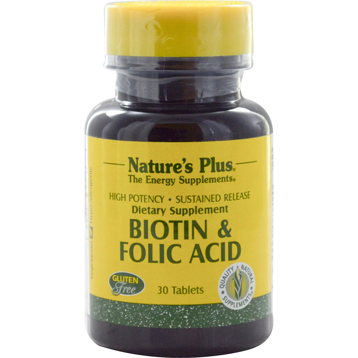 You Deserve The Best Quality Guaranteed Vegetarian Hypo-Allergenic The Energy Supplements High Potency Sustained Release Dietary Supplement Gluten Free Quality, Natural Supplement Micro-Gel - Sustained Release System Nutritional support for natural energy production. In a special base which provides for the gradual release of ingredients over a prolonged period of time. Biotin and folic acid, members of the B-vitamin family, work in unison with the other B-vitamins to support optimal physiological functioning on several fronts. These high-potency tablets from Nature's Plus are in a special base which provides for the gradual release of ingredients over a prolonged period of time, Nature's Plus products are manufactured according to the highest possible standards, with advanced quality control techniques always applied.