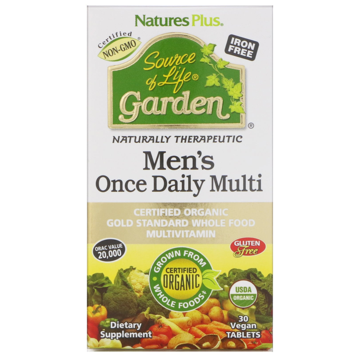 Certified Non-GMO Naturally Therapeutic Dietary Supplement Iron Free Certified Organic Gold Standard Whole Food Multivitamin Orac Value 20,000 Grown From Whole Foods‡ - Certified Organic Gluten Free UDSA Organic Made From Over 35 Organic Whole Foods Yeast Free Vegan Hypo-Allergenic USDA Organic USDA NOP Organic Certification guarantees the pure and wholesome status of this formula, made without synthetic/chemical pesticides and artificial fertilizers Certified Non-GMO Independently Tested and Independently Certified to be free from genetically modified materials and materials associated with GM organisms Environmentally Responsible Guaranteed to be manufactured using the most ecologically friendly and environmentally responsible methods available Recyclable Organic wholesome ingredients and recyclable packaging materials ensure sustainability throughout the product's life cycle Gluten Free Made without wheat, barley, or any gluten contributors, and independently assayed and verified to meet all gluten-free standards Yeast Free Designed and produced without any yeast or yeast byproducts and therefore free from the many potential side effects of yeast Independently GMP Certified Manufacturing facility independently certified to meet stricter, more comprehensive Good Manufacturing Practices (GMPs) than U.S. law requires FALCPA** Allergen Free Guaranteed to be free from all of the major allergens identified in the U.S. Food Allergen Labeling and Consumer Protection Act Nutritional Support for Healthy Energy, Strength, Stamina, Heart Function and Metabolism Source of Life Garden Organic Men's Once Daily Multi is the most convenient way to maximize your energy and overall health to unprecedented heights, with pure and natural organic nutrition! Using the amazing power of real certified organic fruits and vegetables, Source of Life Garden Organic Men's Once Daily Multi therapeutically revitalizes body, mind and soul, without yeast, pesticides, synthetic chemicals and other allergens and toxins that undermine good health. Discover the difference Source of Life Garden Organic Men's Multi can make in your life! Source of Life Garden Organic Men's Once Daily Multi features: 35 organic whole goods 100% DV for most vitamins and minerals 20,000 total ORAC Non-GMO Free from Yeast and all Major FALCPA Allergens Certified Organic Men's Botanicals: Organic Pumpkin Seed, Organic Tomato Extract (rich in lycopene), Organic Turmeric, Organic Pomegranate **Food Allergen Labeling and Consumer Protection Act ‡Certified Organic by Ecocert Ico