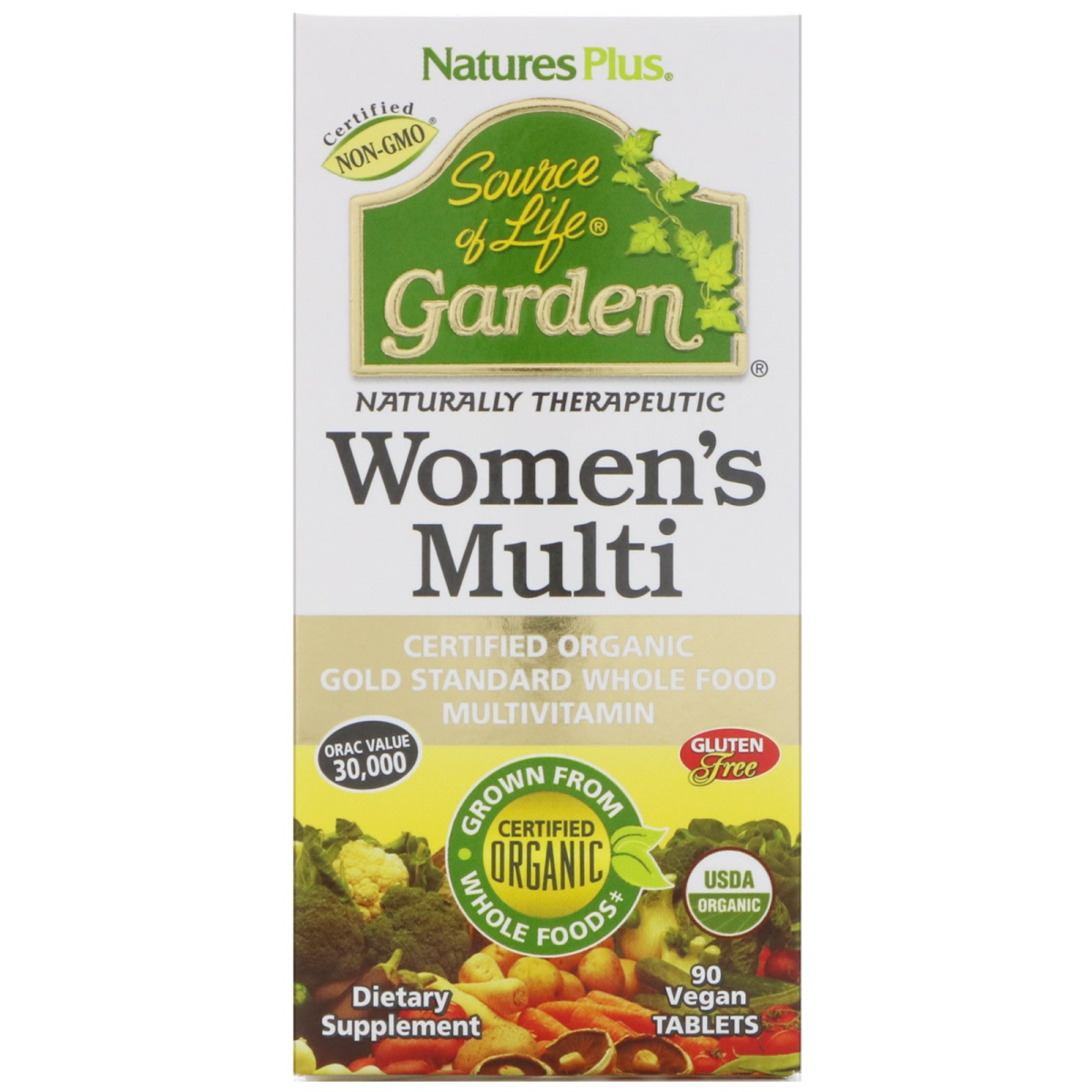 Certified Non-GMO Naturally Therapeutic Dietary Supplement Certified Organic Gold Standard Whole Food Multivitamin Orac Value 30,000 Grown From Whole Foods‡ - Certified Organic Gluten Free USDA Organic Made From Over 35 Organic Whole Foods Yeast Free Vegan Hypo-Allergenic USDA Organic USDA NOP Organic Certification guarantees the pure and wholesome status of this formula, made without synthetic/chemical pesticides and artificial fertilizers Certified Non-GMO Independently Tested Independently Certified to be free from genetically modified materials and materials associated with GM organisms Environmentally Responsible Guaranteed to be manufactured using the most ecologically friendly and environmentally responsible methods available Recyclable Organic wholesome ingredients and recyclable packaging materials ensure sustainability throughout the product's life cycle Gluten Free Made without wheat, barley, or any gluten contributors, and independently assayed and verified to meet all gluten-free standards Yeast Free Designed and produced without any yeast or yeast byproducts and therefore free from the many potential side effects of yeast Independently GMP Certified Manufacturing facility independently certified to meet stricter, more comprehensive Good Manufacturing Practices (GMPs) than U.S. law requires FALCPA** Allergen Free Guaranteed to be free from all of the major allergens identified in the U.S. Food Allergen Labeling and Consumer Protection Act Nutritional Support for Healthy Energy, Metabolism, Heart Function and Hormonal Function Source of Life Garden Organic Women's Multi harnesses the energizing power of real fruits and vegetables, delivering unprecedented potencies of essential vitamins and minerals, organically. Overcoming women's health challenges with the unequaled nutrition of certified organic whole foods therapeutically revitalizes body, mind and soul. Discover the difference Source of Life Garden Organic Women's Multi can make in your life! Source of Life Garden Organic Women's Multi features: 35 organic whole foods 140% DV for most vitamins and minerals 30,000 total ORAC Non-GMO Free from Yeast and all Major FALCPA Allergens Certified Organic Women's Botanicals: Certified Organic Cranberry, Certified Organic Maca, Certified Organic Flax, Certified Organic Fenugreek ‡Certified Organic by Ecocert Ico **Food Allergen Labeling and Consumer Protection Act