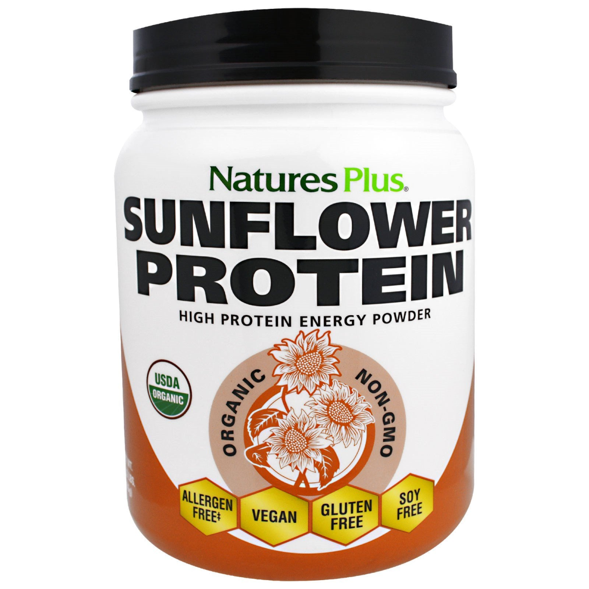 High Protein Energy Powder USDA Certified Non-GMO Allergen Free‡ Vegan Gluten Free Soy Free Sunflower Protein Mixes Instantly - No Blender Required Yeast Free Certified by Ecocert Ico Certified GMP Facility Free From All Major Allergens (In FALCPA) ‡ Nutritional Support for Nerve & Muscle Recovery With a branched-chain amino acid (BCAA) content of nearly 20%, sunflower protein is the protein of choice for athletes, or anyone seeking improved lean body mass, strength, and overall well-being. Nature's Plus Sunflower Protein delivers the revitalizing protein you need to power your day and keep your body healthy! With its superior taste, this instant protein can be enjoyed for breakfast, lunch, dinner, or anytime you need an energy boost. This pure and natural protein comes straight from sunflower, allowing you to get all the natural benefits without any artificial additives. It also has the added benefit of being supercharged with protein-energy-liberating enzymes, making it easy for your body to absorb the protein it craves. Nature's Plus Sunflower Protein will make you feel fuller for longer and fits perfectly into your everyday dietary routine! Complete protein - delivers all essential amino acids Suitable for low-glycemic diets Vegan Supercharged with Protein-energy-liberating enzymes! ‡Food Allergen Labeling and Consumer Protection Act Major Allergens