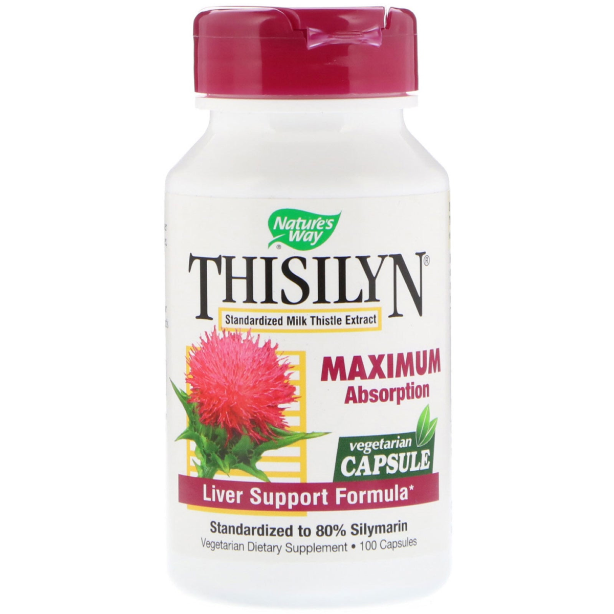 Standardized Milk Thistle Extract Maximum Absorption Vegetarian Capsule Standardized to 80% Silymarin Vegetarian Dietary Supplement Dissolution testing helps ensure the silymarin in Thisilyn proprietary extract dissolves quickly and easily in the digestive tract. Thisilyn Standardized Milk Thistle extract supports and promotes normal liver function. The active bioflavonoid complex, silymarin-provides antioxidative properties that help protect the liver. The proprietary milk thistle extract in Thisilyn is uniquely prepared and tested for purity and dissolution--ensuring the plant's desirable benefits remain bioavailable.