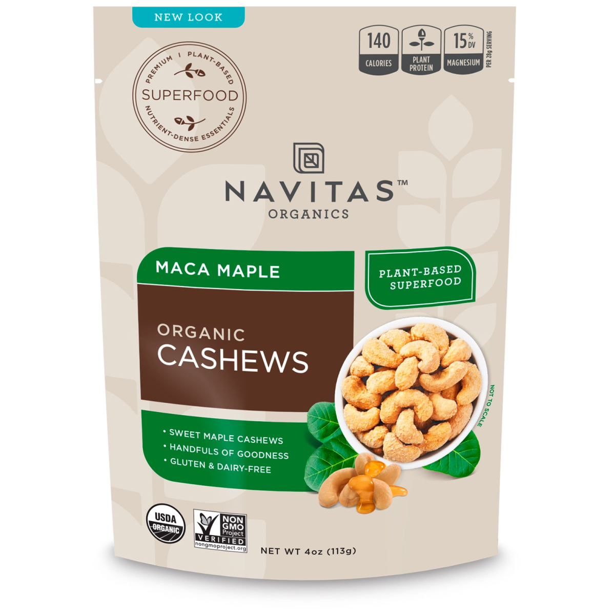 140 Calories Plant Protein 15% DV Magnesium Per 28 g Serving Sweet Maple Cashews Handfuls of Goodness Gluten & Dairy-Free USDA Non GMO Project Verified Ancient Treasure No Artificial Colors or Flavors Satisfying Grab-n-Go Snacks No artificial colors or flavors Navitas. Live Life Positive. Certified B Corporation Certified Gluten-Free Vegan BPA Free Superfood Premium Plant-Based Nutrient-Dense Essentials Superfood Promise: Using the most health-boosting plants in the world, we promise our superfoods are , nutrient-dense & handled with care at every step. Cashews: Seed of the Cashew Apple Maca: Inca Warriors Used for Endurance Maple: Toasted Sweetness Go after each day with passion and drive. Super-simple, super-nutritious superfoods give you the energy you need to live each day to the fullest. In fact, Navitas (Nuh-vee-tus) is Latin for 'energy.' We search the globe for the highest-quality superfoods to keep you energized. What's more, we work hard to power the positive in all we do as a company, celebrating healthy foods and supporting sustainable causes.