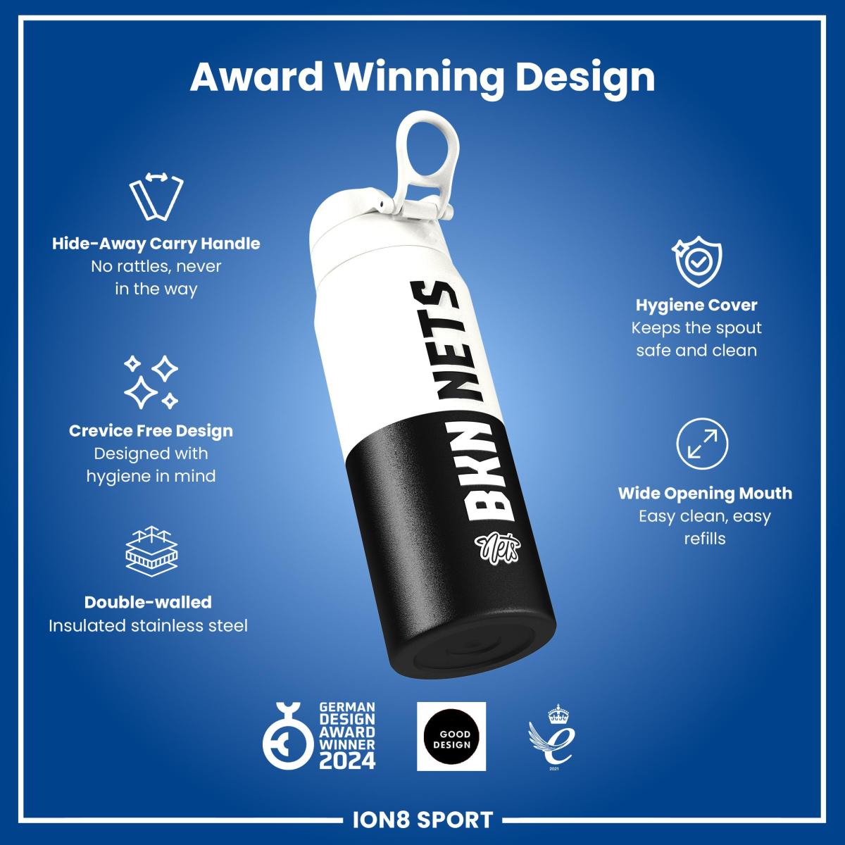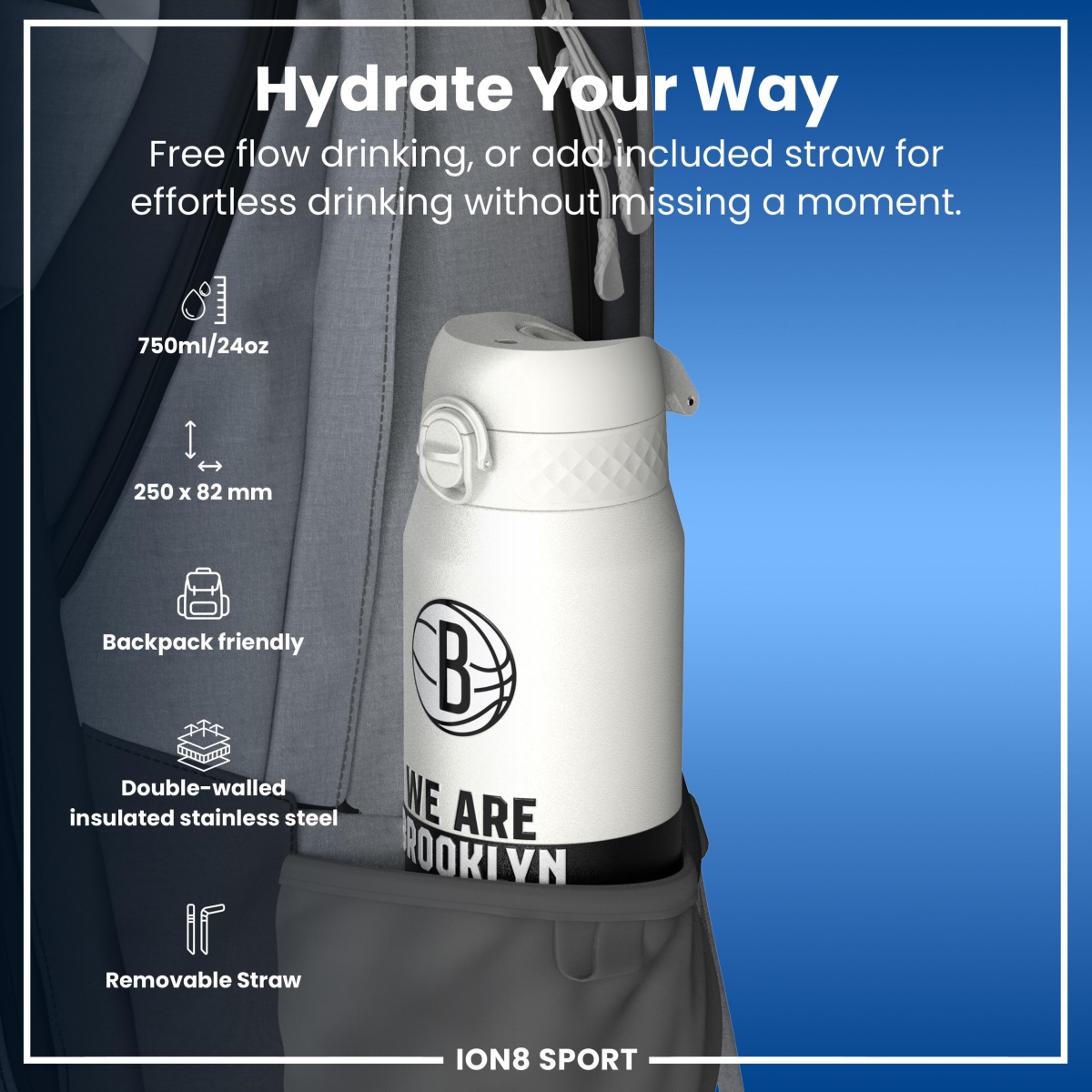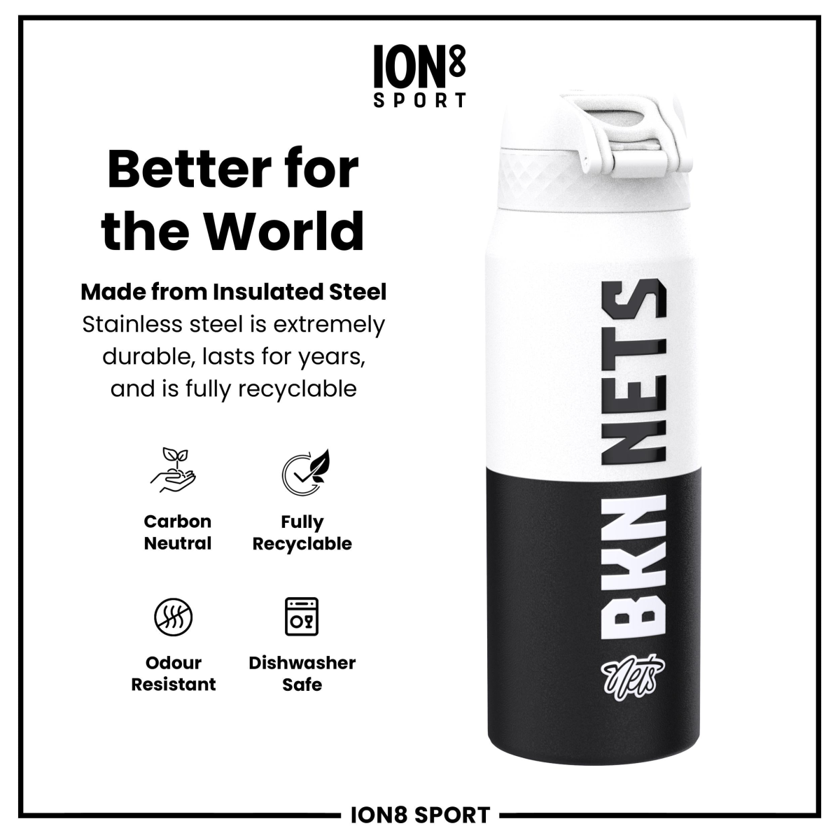 NBA x ION8, Insulated Steel Bottle, Brooklyn Nets, 750ml (24oz)