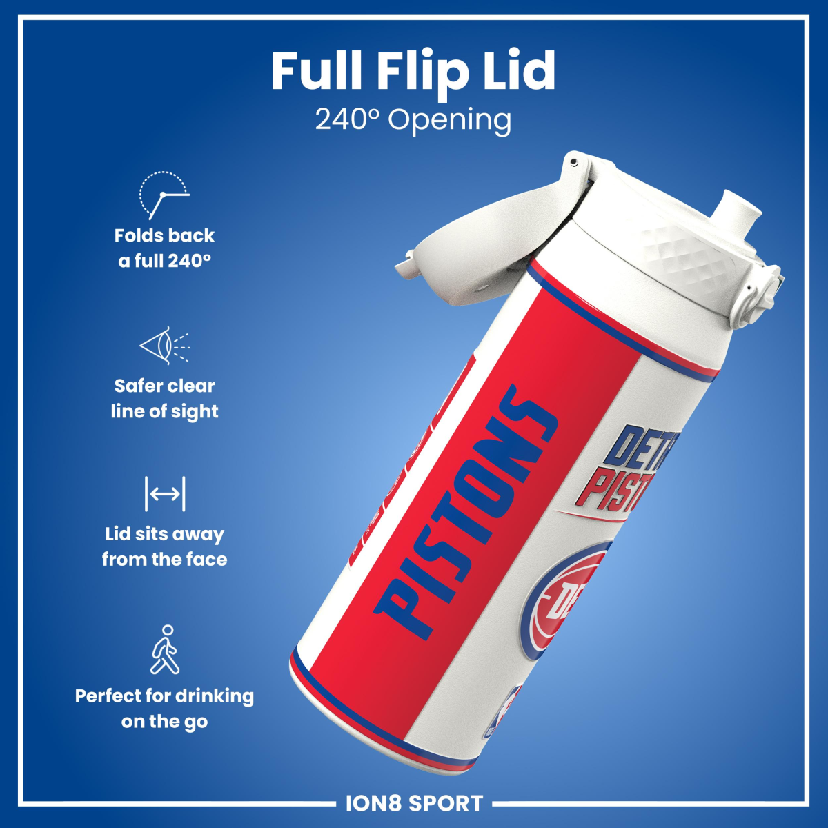 NBA x ION8, Insulated Steel Bottle, Detroit Pistons, 750ml (24oz)