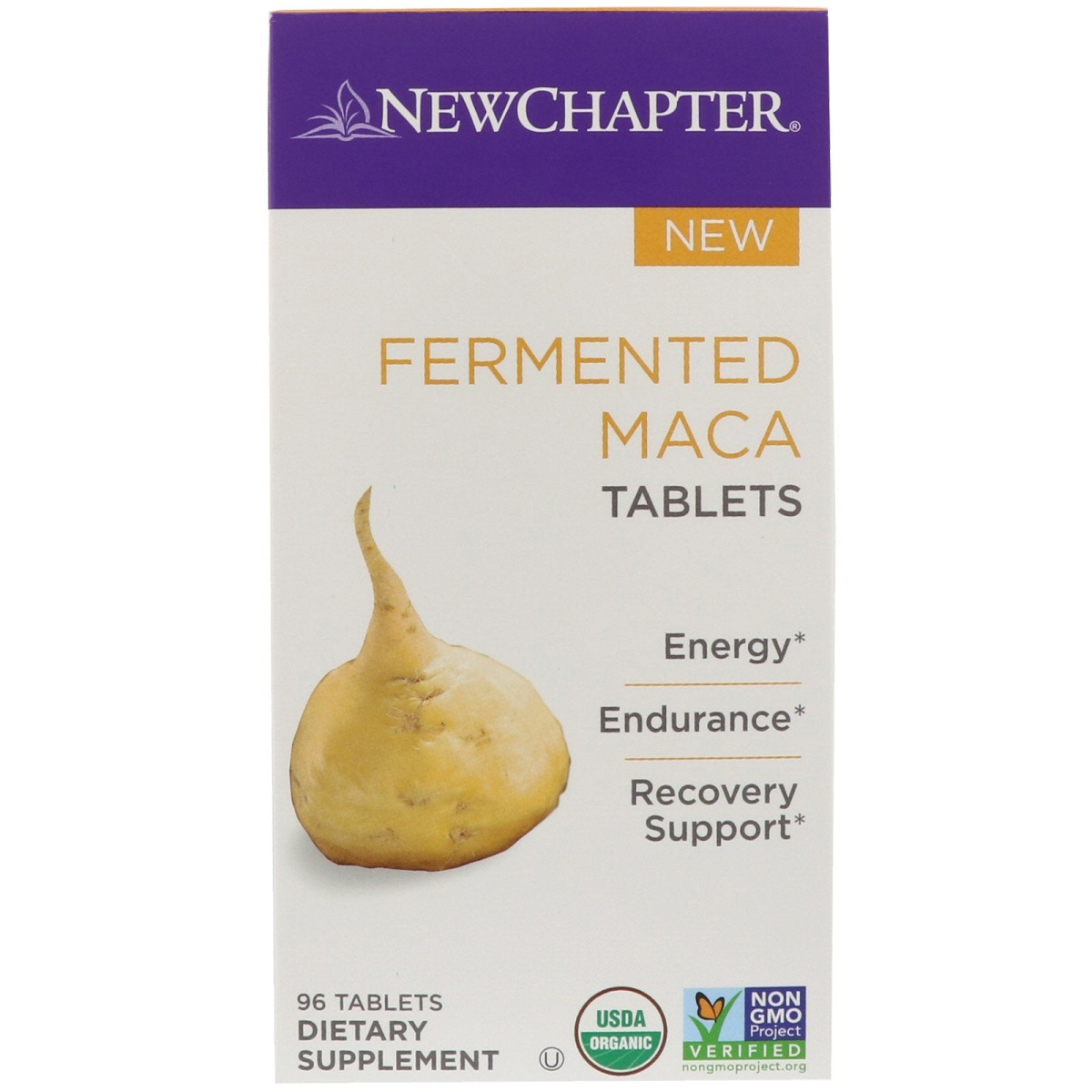 Energy Endurance Recovery Support Dietary Supplement USDA Organic Non GMO Project Verified Certified B Corporation Certifed Organic by International Certification Services, Inc. 100% Vegetarian; No Artificial Flavors or Colors Gluten Free With Gratitude From Vermont New Chapter's Guiding Principles To Deliver the Wisdom of Nature thus relieving suffering and promoting optimal health. To advance the organic mission, nourishing body and soul with the healing intelligence of pure whole foods and herbal supplements. To nurture and sustain Mother Earth, the source of natural healing. To honor and reward personal growth, for enlightened teamwork depends on the vitality of every member of the New Chapter family. Certified B Corporation New Chapter is proud to be a Certified B Corp, using business as a force for good. Discover the Fermented Maca Difference Our Fermentation Advantage New Chapter brings greater vitality to organic Maca with the time-tested power of fermentation. Our proven, 2-step method gives you these benefits: Unlocks organic Maca's full potential by fermenting with clinically studied probiotics Makes the herbs easily digestible Includes the nutrient-packed media (fermentate) for holistic support Finest Quality We source Maca from the mountains of Peru, where it adaptogenic properties have been revered for centuries. Our Maca is enhanced with Schizandra berry and Cardamom. Founder's Message "Following our principles of acknowledging both science and tradition, I formulated these Maca tablets to deliver the health benefits of whole herbs plus the time-tested advantages of fermentation. I invite you to discover the Wisdom of Nature!" Paul Schulick New Chapter Founder & Master Herbalist
