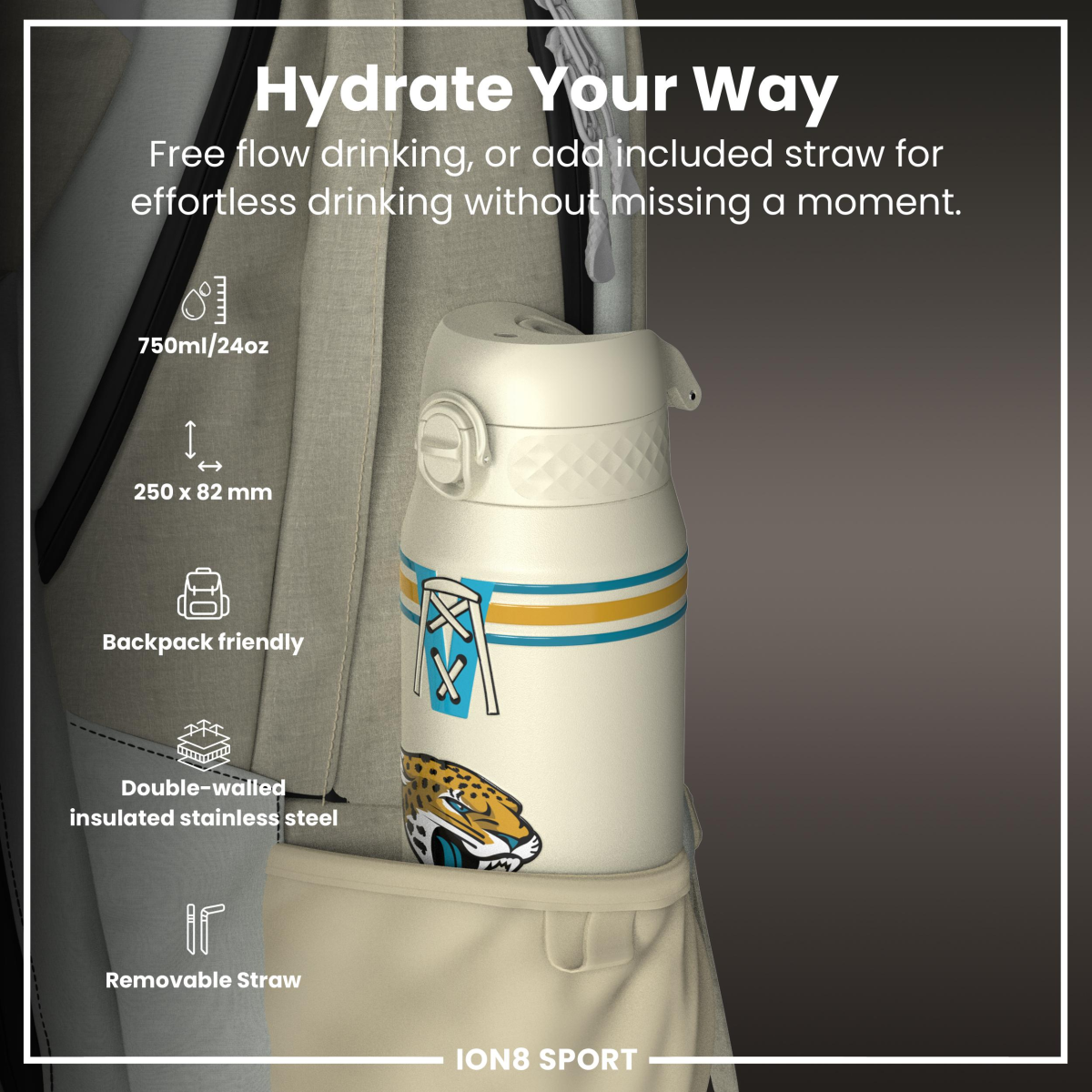 NFL x ION8 Insulated Steel Water Bottle, NFL Jaguars, 750ml (24oz)