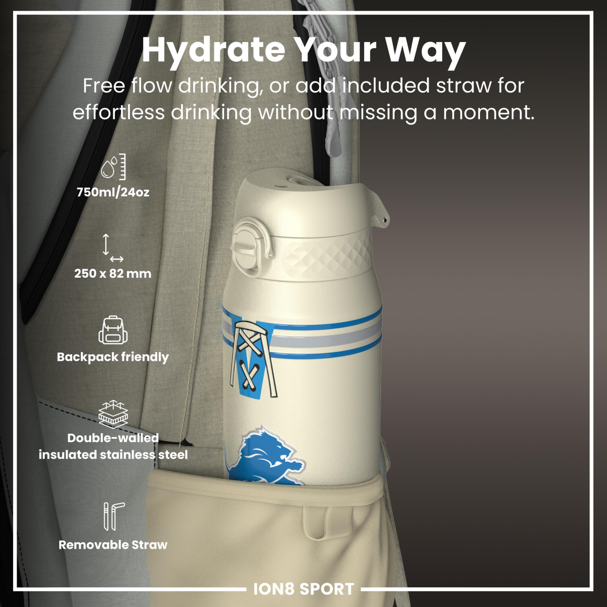 NFL x ION8 Insulated Steel Water Bottle, NFL Lions, 750ml (24oz)