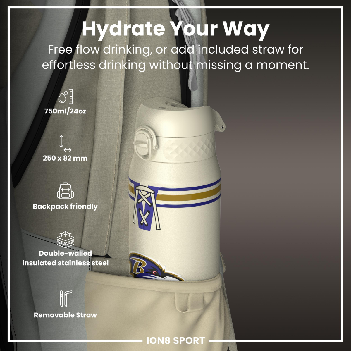 NFL x ION8 Insulated Steel Water Bottle, NFL Ravens, 750ml (24oz)