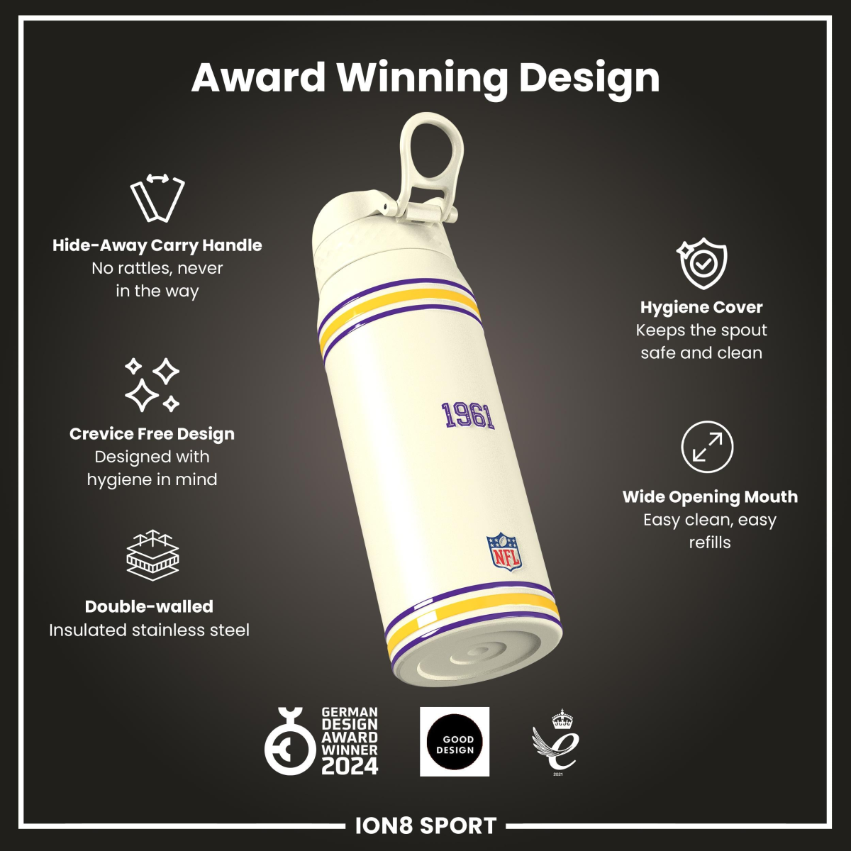 NFL x ION8 Insulated Steel Water Bottle, NFL Vikings, 750ml (24oz)