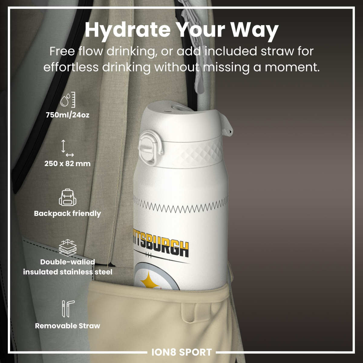 NFL x Ion8 Sports, Insulated Bottle, GameDay Series, Watt Steelers, 750ml (24oz)