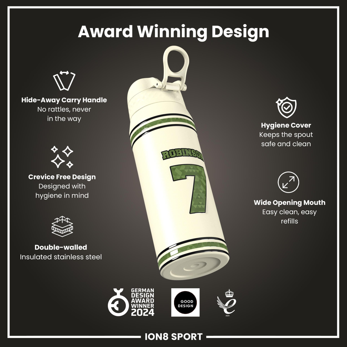 Raise your game with the Official NFL Thermal Insulated Bottle by ION8. Designed to meet the uncompromising standards of NFL, this 750ml double-wall stainless steel bottle combines premium performance with unmistakable NFL pride.