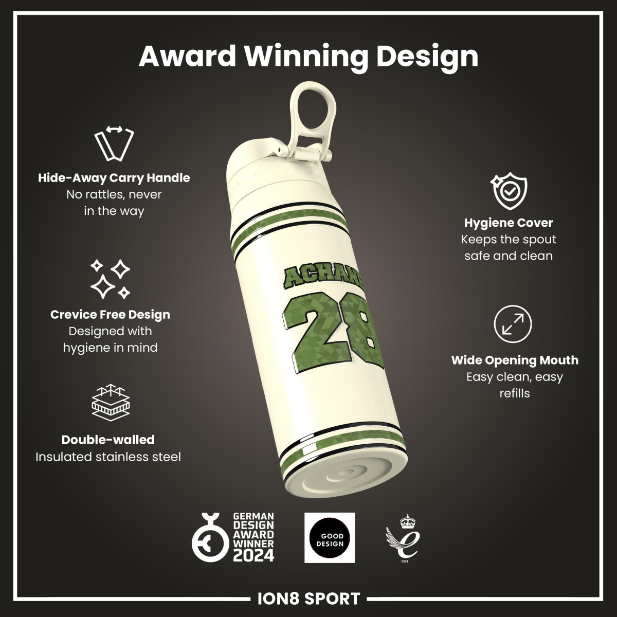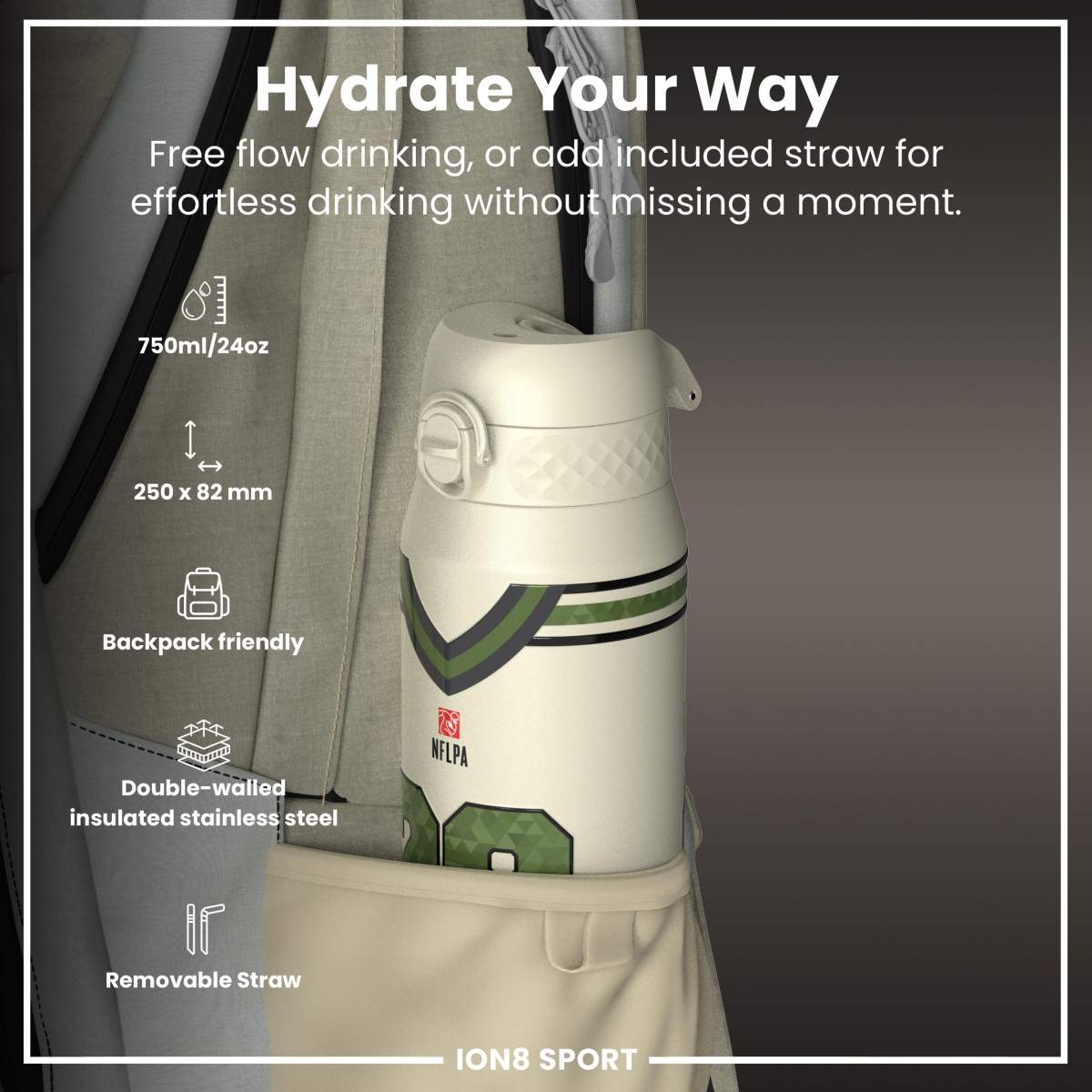 Raise your game with the Official NFL Thermal Insulated Bottle by ION8. Designed to meet the uncompromising standards of NFL, this 750ml double-wall stainless steel bottle combines premium performance with unmistakable NFL pride.