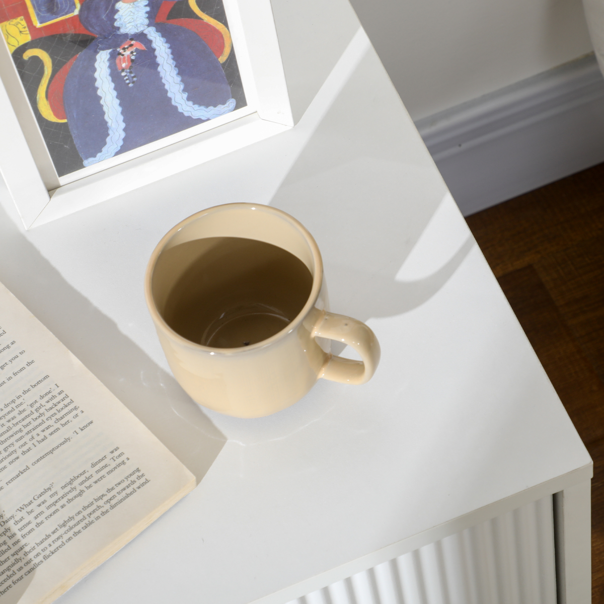 Two drawers: Bedside table offers decent storage for keeping small bedtime essentials close to you.Elegant design: A white bedside table, with gold-coloured handles and legs and ribbed doors - a beautiful design.Metal legs: Hairpin shaped to complement the elegant design, this end table stands steady and supported.Sturdy build, with melamine coating: Made from particle board, this bedside table with drawers is suitable for daily use. Smooth coating protects against light wear and marks.Dimensions: 47H x 40L x 40Wcm. Drawer inner: 8.1H x 31.1W x 28.5Dcm. Suitable bed height: 40-55cm. Maximum load 40kg. Assembly required.
