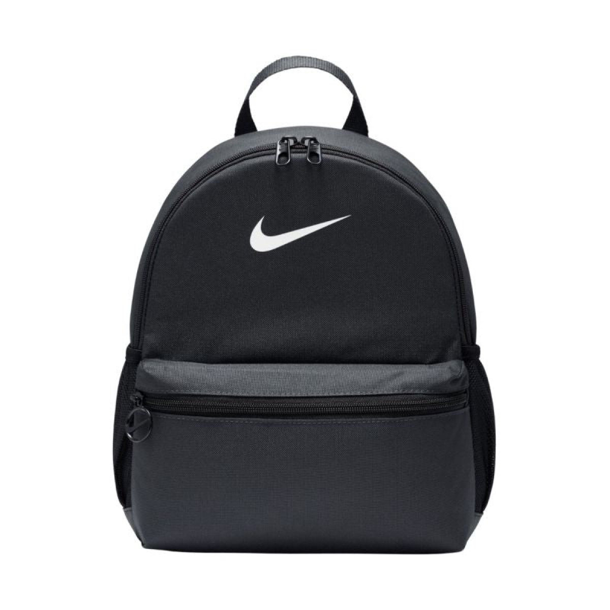 The Nike kids' school backpack will meet the numerous needs of parents and students. The two-way opening main compartment provides easy access to books, a pencil case, and other essentials. Made of densely woven polyester, it will last for a long time. Mesh side pockets make it easy to transport drinks. A handle at the top allows for hanging it under a desk or carrying it by hand. Adjustable, padded shoulder straps significantly improve comfort. A zippered pocket at the front allows easy access to your favorite small items.