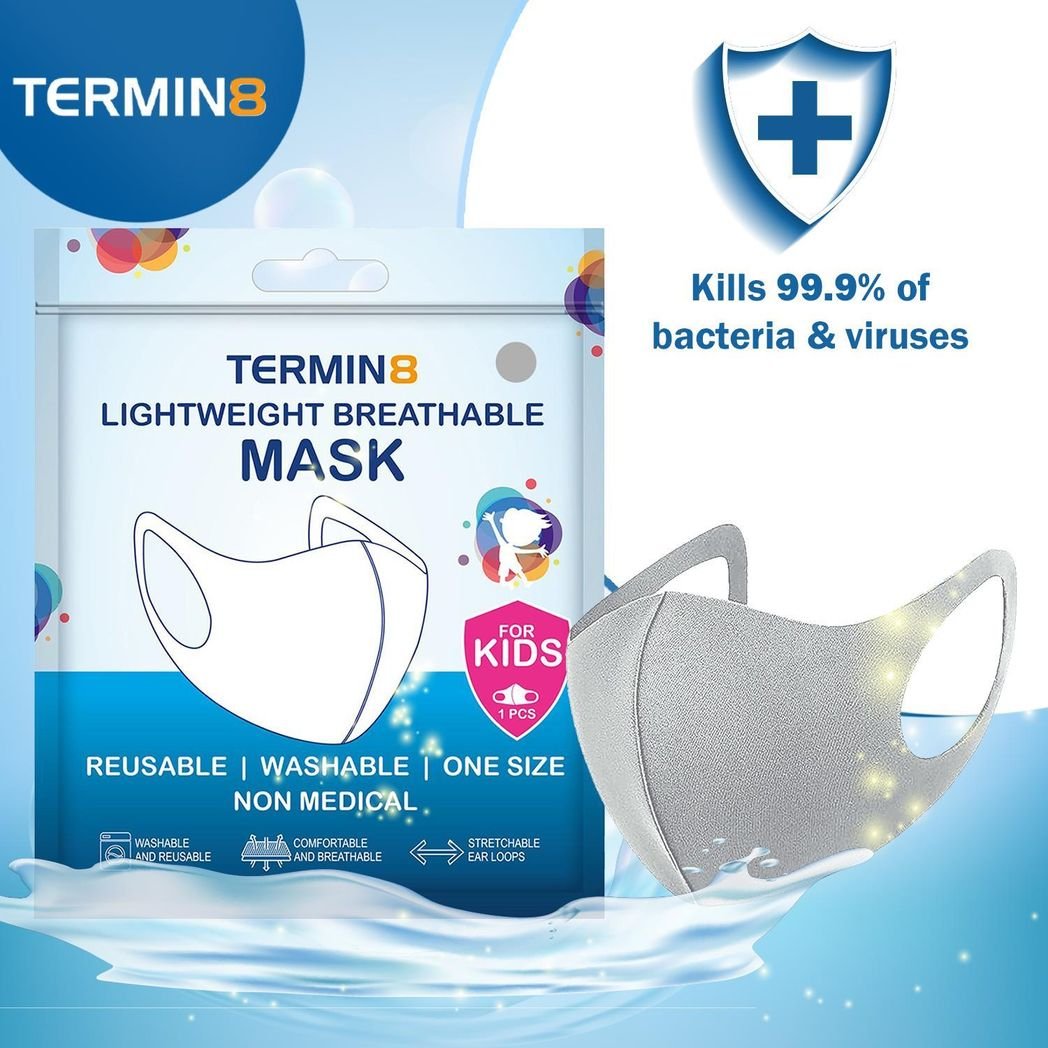 Termin8 Lightweight Breathable Reusable Face Mask for Kids, Grey