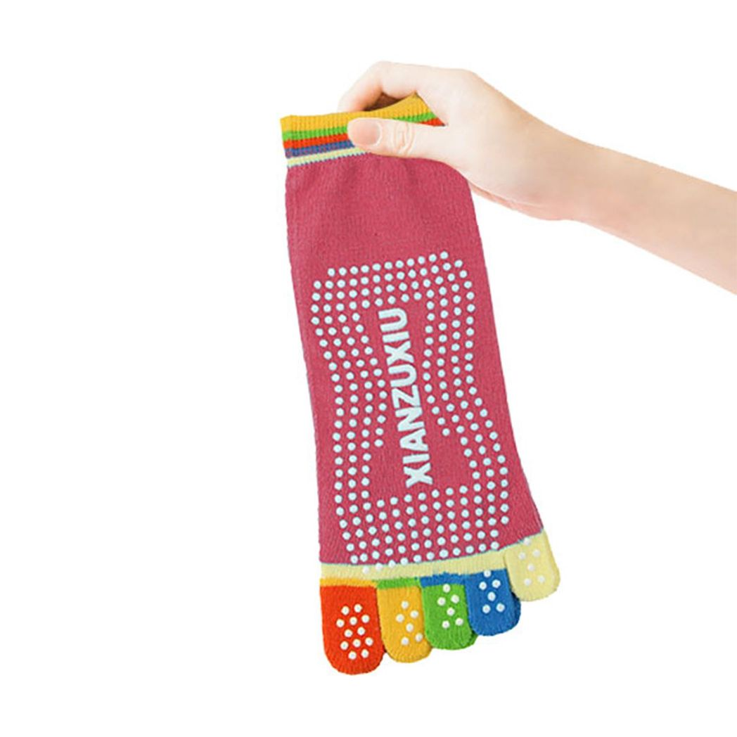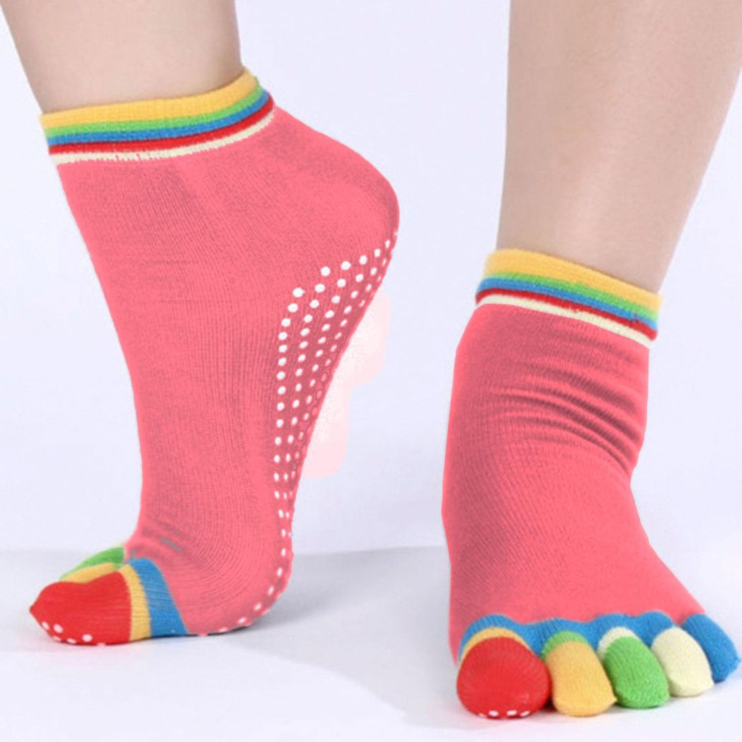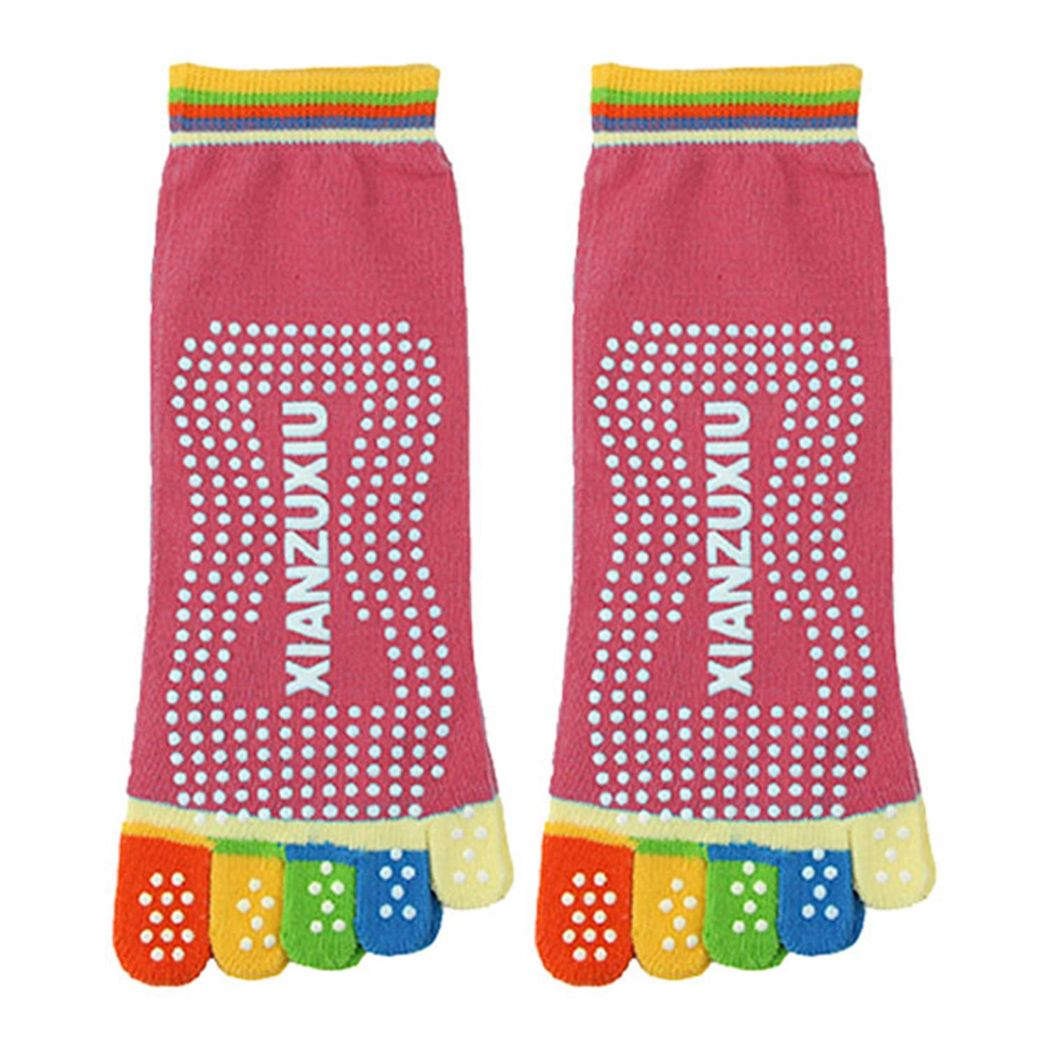 Non Slip Skid Pilates Yoga Socks Anti-Slip Full Toe with Grips Cotton[Pink]