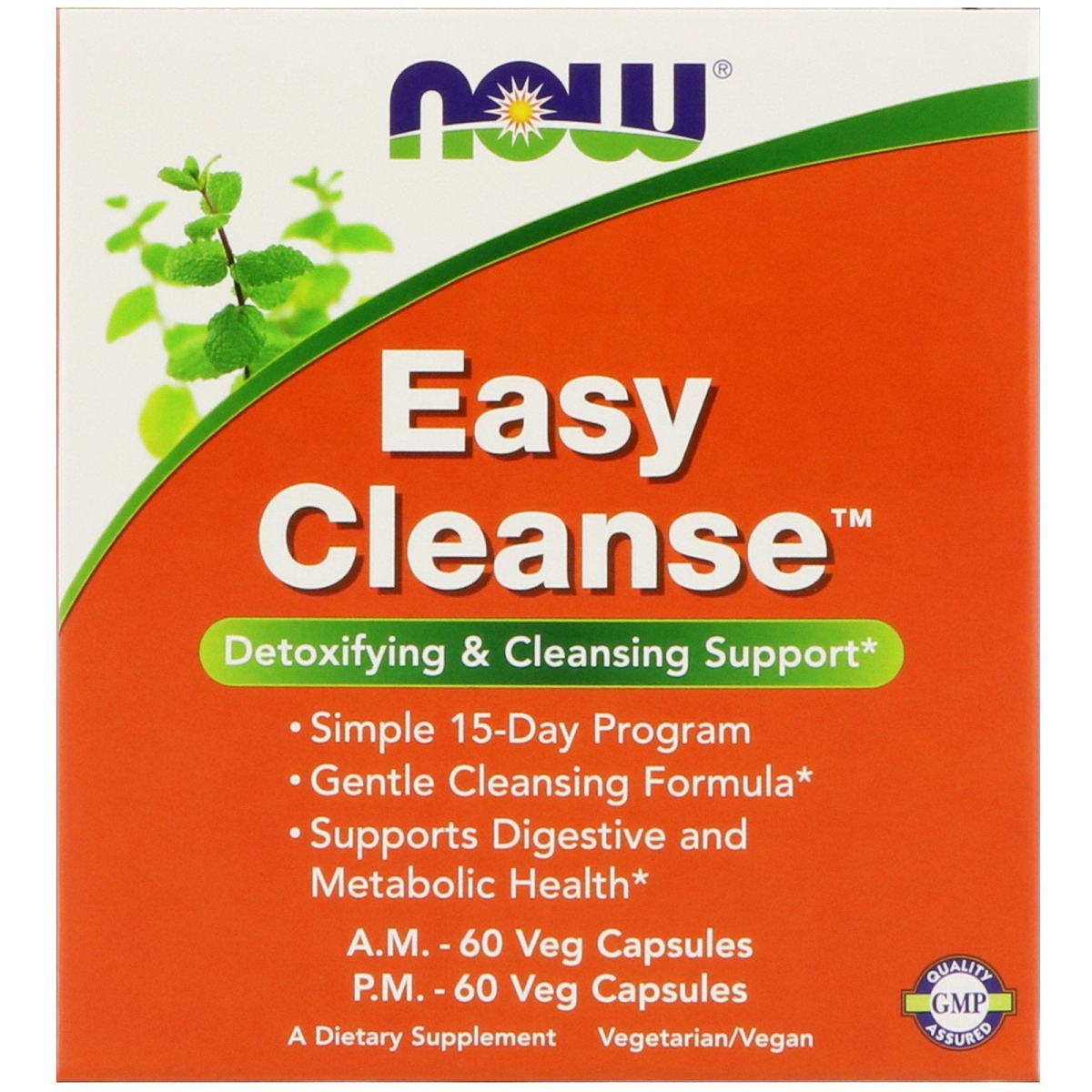 Detoxifying & Cleansing Support Simple 15-Day Program Gentle Cleansing Formula Supports Digestive and Metabolic Health A Dietary Supplement Vegetarian - Vegan GMP Quality Assured Botanicals/Herbs Family Owned Since 1968 Signs that the body may need detox support: Low energy levels, fatigue Poor skin complexion Mental cloudiness, frustration Increased lack of motivation Irregularity, digestive discomfort Sub-optimal immune function Body odor, bad breath Poor state of mind, irritability Brittle hair, skin or nails NOW Easy Cleanse is a digestive cleansing program that was developed to support the body's own detoxification mechanisms, easing the elimination of toxins from the body. By supporting liver and intestinal function, this unique combination of herbal extracts and nutrients serves as simple way to assist in the elimination the typical by-products of metabolism, as well as waste materials derived from common everyday environmental exposures. Easy Cleanse also promotes a healthy, functional digestive system. Easy Cleanse A.M. Detox Formula Easy Cleanse A.M. Detox Formula is a unique blend of specialized herbs, nutrients, and green foods that support gastrointestinal health. This innovative formula works around the clock to assist the body in a natural detoxification and elimination of toxins, thereby supporting optimal digestive system function. Easy Cleanse P.M. Cleansing Formula Easy Cleanse P.M. Cleansing Formula works while you sleep to support a natural elimination of toxins that have accumulated throughout the day. Easy Cleanse P.M. has gentle, bulking fibers that naturally bind to normal metabolic by-products, cholesterol, and fat, and facilitate their elimination from the body.