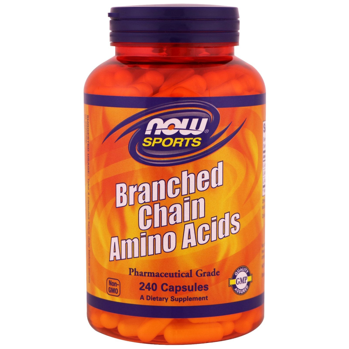 Pharmaceutical Grade Non-GMO GMP Quality Assured A Dietary Supplement Now Branched Chain Amino Acids are pharmaceutical grade. The Branched Chain Amino Acids (BCAAs), Leucine, Isoleucine and Valine are essential amino acids, and thus cannot be made in the body. BCAAs are critical for muscle protein synthesis, and because BCAAs can be used as fuel during intense exercise, BCAA supplementation can help to preserve existing muscle tissue. In addition, BCAAs can support the recovery process by promoting the normal repair processes that take place after exertion. BCAAs also play an important role in the maintenance of proper immune system function and the support of healthy aging.