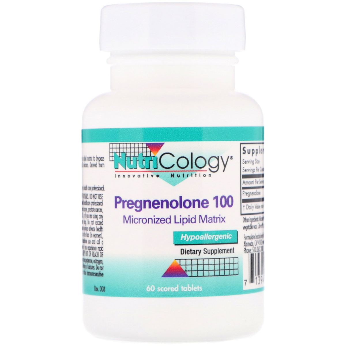 Nutricology, Pregnenolone 100, 60 Scored Tablets