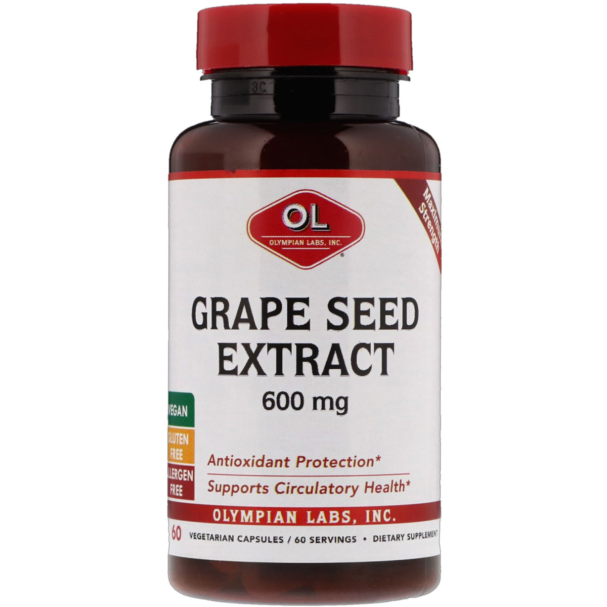 Olympian Labs Inc., Grape Seed Extract, Maximum Strength, 600 mg, 60 Vegetarian Capsules