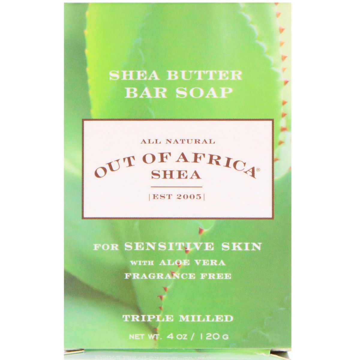 100% Pure Raw Shea Butter Natural & Unrefined Est 2005 For Sensitive Skin Triple Milled Paraben Free Vegan Eco Friendly Gluten Free Non Comedogenic Cruelty Free No Artificial Colors Phthalates Free Gentle and creamy for sensitive skin Our shea butter bar soap is formulated to be gentle on skin, while maintaining your skin's natural moisture. Made with naturally derived ingredients including aloe vera. Out of Africa bar soaps contain 100% pure unrefined Shea Butter. Most others contain only 1 or 2%