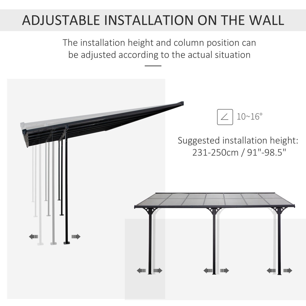 Outdoor Patio Gazebo Pergola, Aluminum Post, 4.35x3m Mounted on the Wall Roof