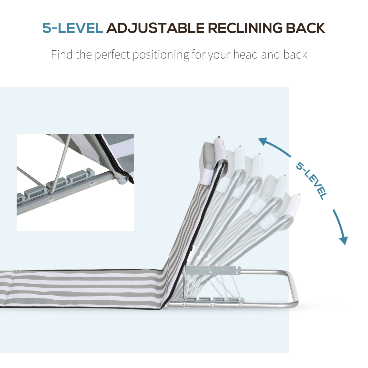 Outsunny 2 Pieces Outdoor Beach Mat Steel Reclining Chair Set w/ Pillow Grey