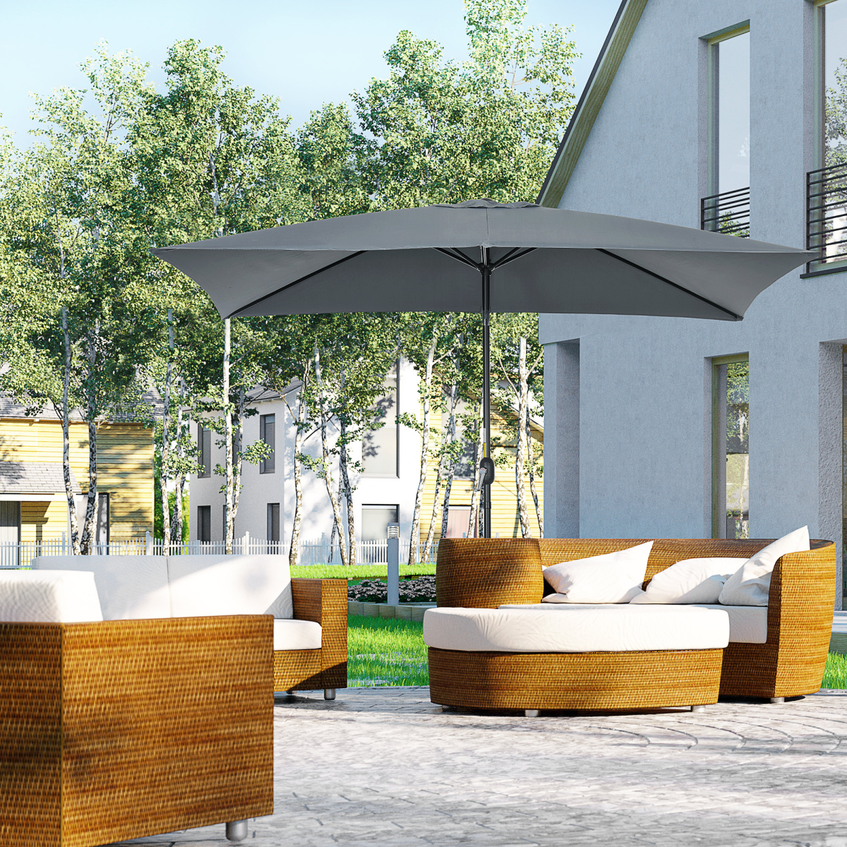 Outsunny 3x2m Patio Parasol Canopy Tilt Crank 6 Ribs Sun Shade Garden Dark Grey