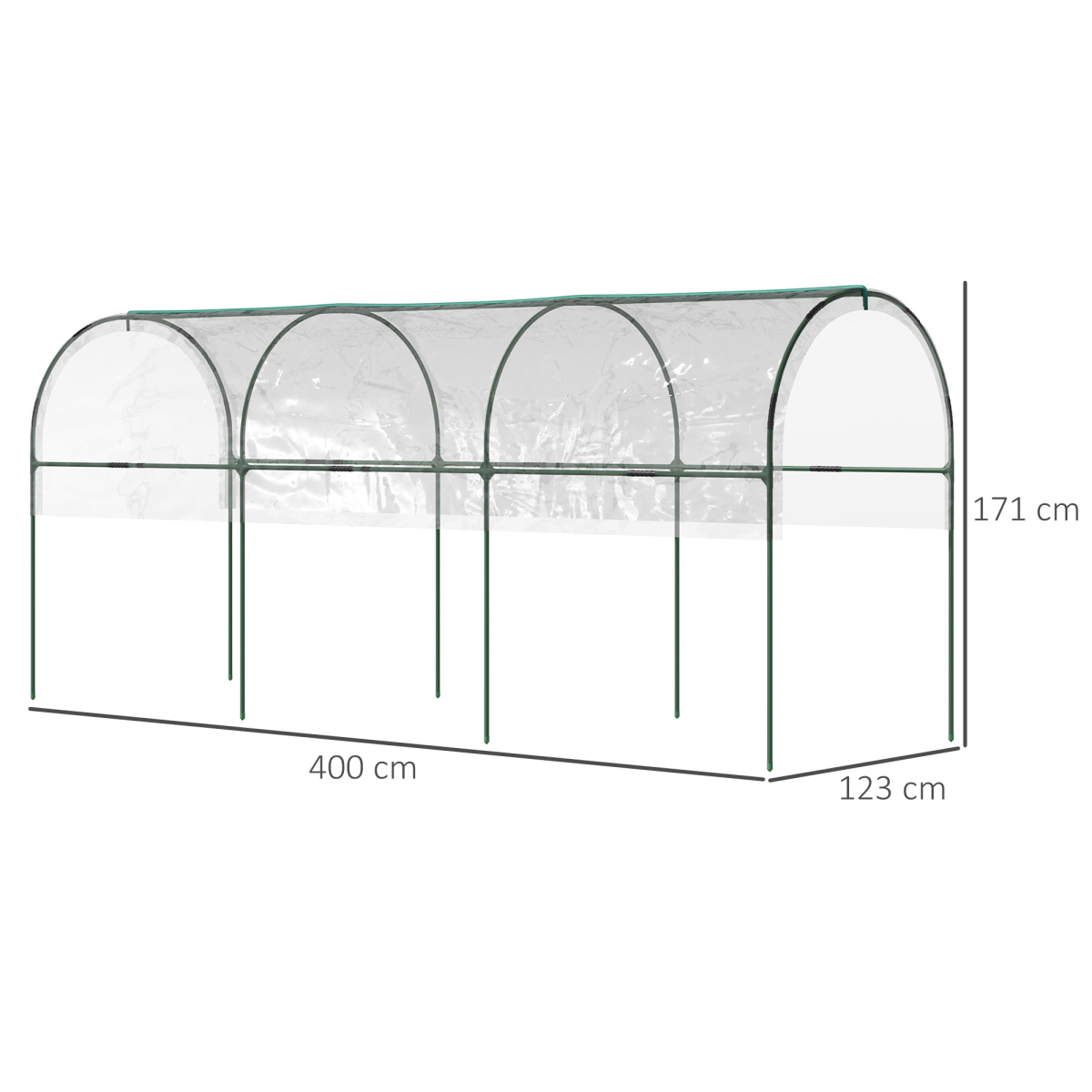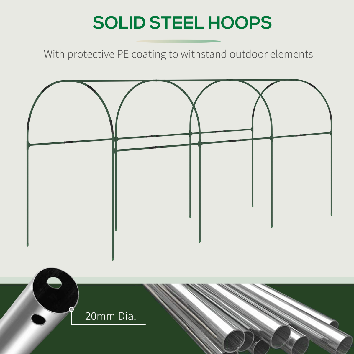 - Half-open design: protected top and open bottom. Great for growth - Steel frame for strong standing structure - Curved top with plastic sheet top covering: protects from rain, prevents liquid build-up - Corner joints included for easy set-up. Fasten tarp to frame with the plastic clips - 4 x guy ropes and 8 x ground stakes included - Assembly required: two people suggested to set up