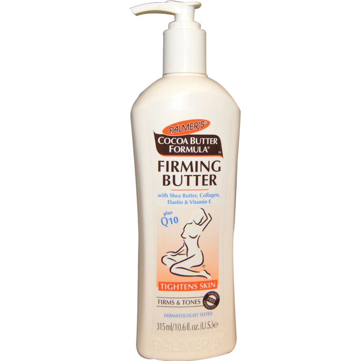 With Shea Butter, Collagen Elastin & Vitamin E Plus Q10 Tightens Skin Firms & Tones Paraben Phthalate Free Dermatologist Tested This unique formula is specifically designed to firm, tighten and tone your skin, anytime, even after weight loss. The unique combination of Cocoa Butter, Collagen, Elastin and Shea Butter helps support skin elasticity and texture. In addition, Ginseng and Vitamin E help soften and rejuvenate skin. Co Enzyme Q10 is an antioxidant that helps smooth and revitalize skin.