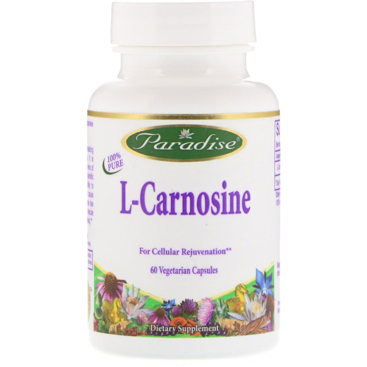 100% Pure For Cellular Rejuvenation Dietary Supplement Enhancing Nature's Miracles Since 1994 Paradise L-Carnosine is the finest quality Japanese pharmaceutical grade L-Carnosine available. L-Carnosine is a proton buffering neuropeptide consisting of alanine and histidine (beta-alanyl-L-histidine). It is normally found in the brain, innervated tissues, the lens of the eye and skeletal muscle tissue. Current scientific research suggests that L-Carnosine has the ability to protect cells against oxidative stress that can cause premature aging and cellular damage. L-Carnosine has heavy metal, free radical and active sugar molecule scavenging activity (helps prevent glycation of proteins).