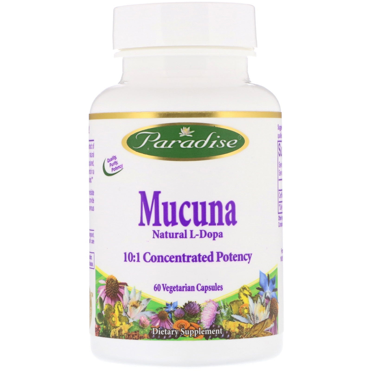 Quality, Purity, Potency Natural L-Dopa 10:1 Concentrated Potency Dietary Supplement Enhancing Nature's Minerals Since 1994 Made The Way Nature Intended! Paradise Mucuna pruriens seed is a 10:1 concentrate extract of the highest quality nature has to offer. Using a 100% natural extraction method the true essence of the whole herb is captured, therefore retaining all of its active and synergistic constituents in a truly potent holistic full spectrum form the way nature intended. Mucuna pruriens contains high levels of L-Dopa, the immediate precursor of the dopamine neurotransmitter that helps provide a positive mood and support for normal brain and nervous system function.