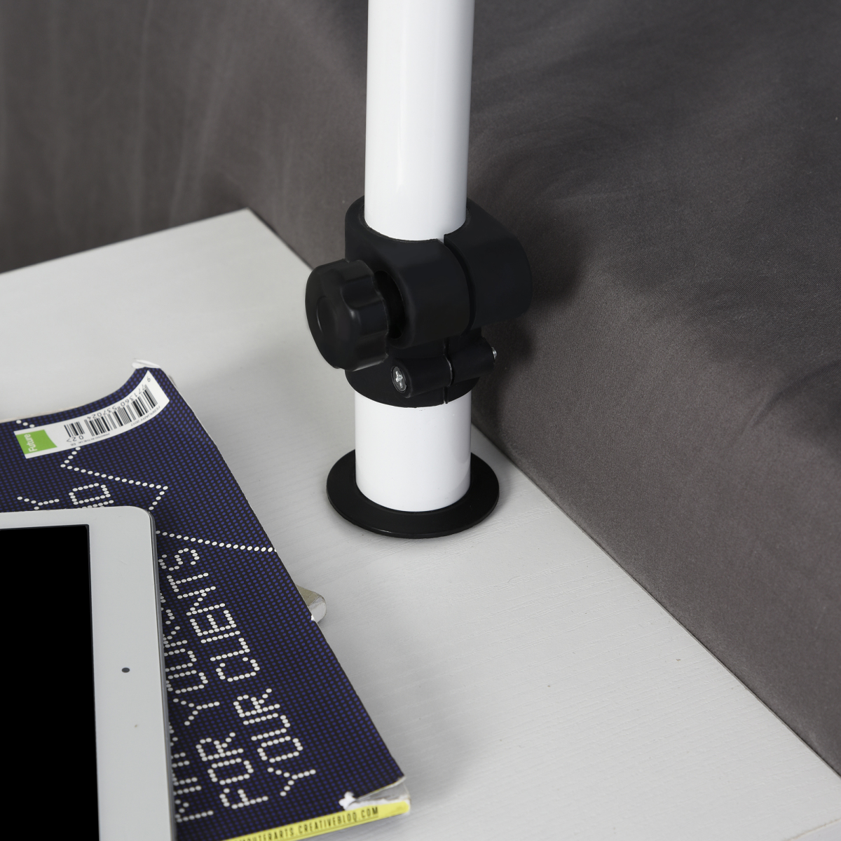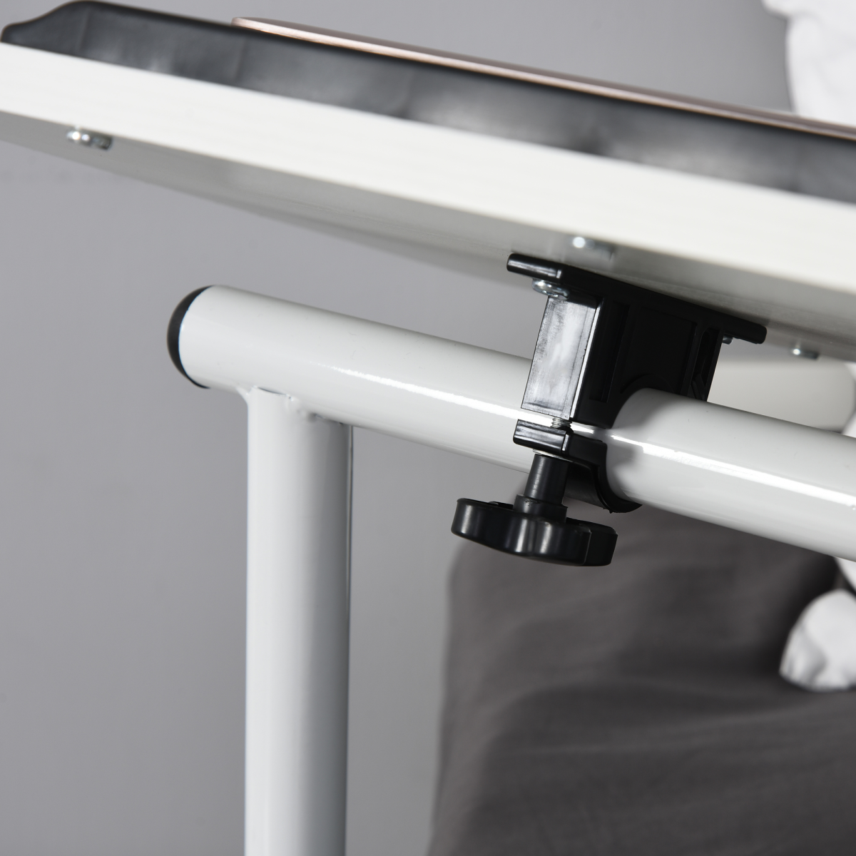 The top table is 360 rotatable, height adjustable and tiltable The edge stopper prevents items from slipping and falling Two drawers provide concealed storage The compartment and the cabinet top for convenient open storage Side magazine rack for quick taking your readings and files Four universal casters with brakes allow moving anywhere as you wish Can be used as work station, nightstand, side table, console table Suitable for bedroom, living room, home office