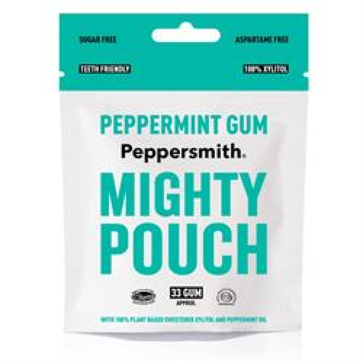 Premium Peppermint Xylitol Gum 50g, flavoured with real British mint oil and packed in plastic-free recyclable packaging.