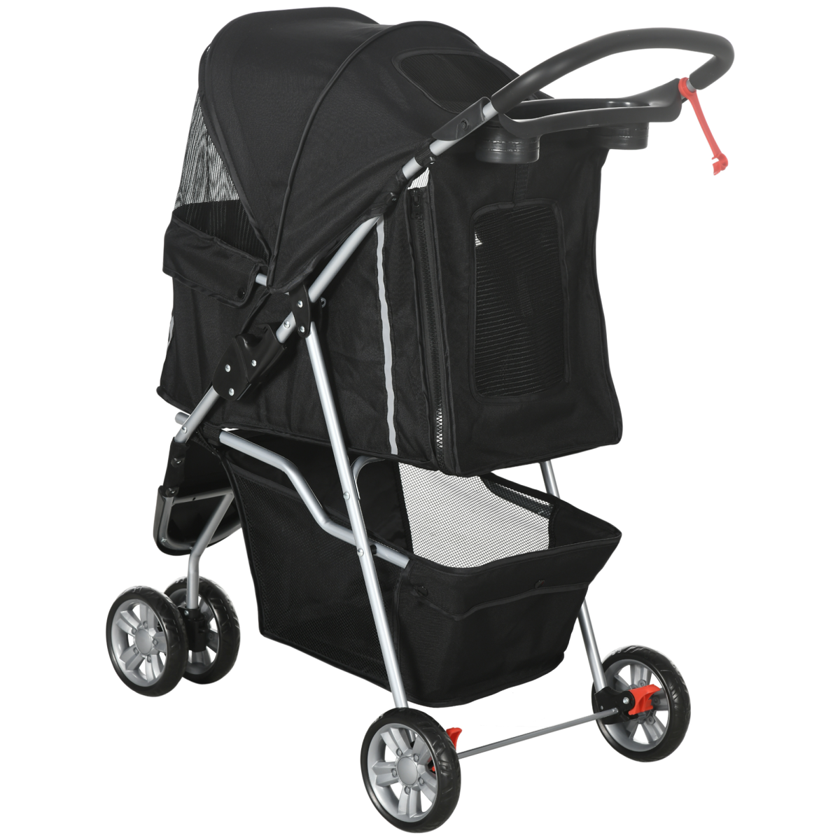Pet Stroller Pushchair Carrier for Cat Puppy with 3 Wheels Black