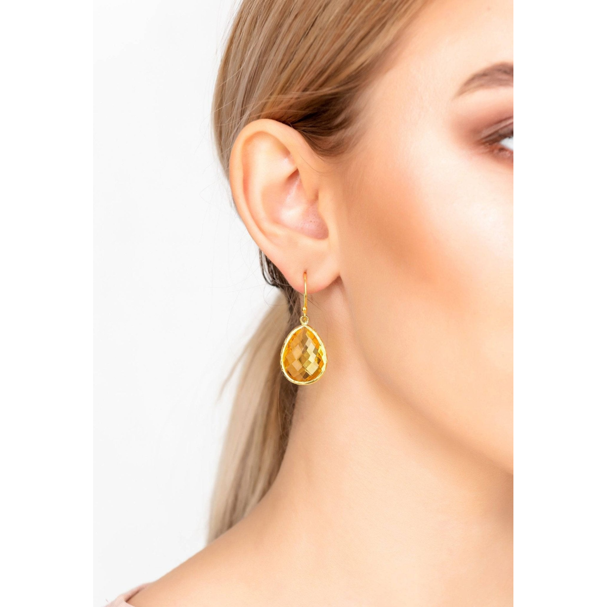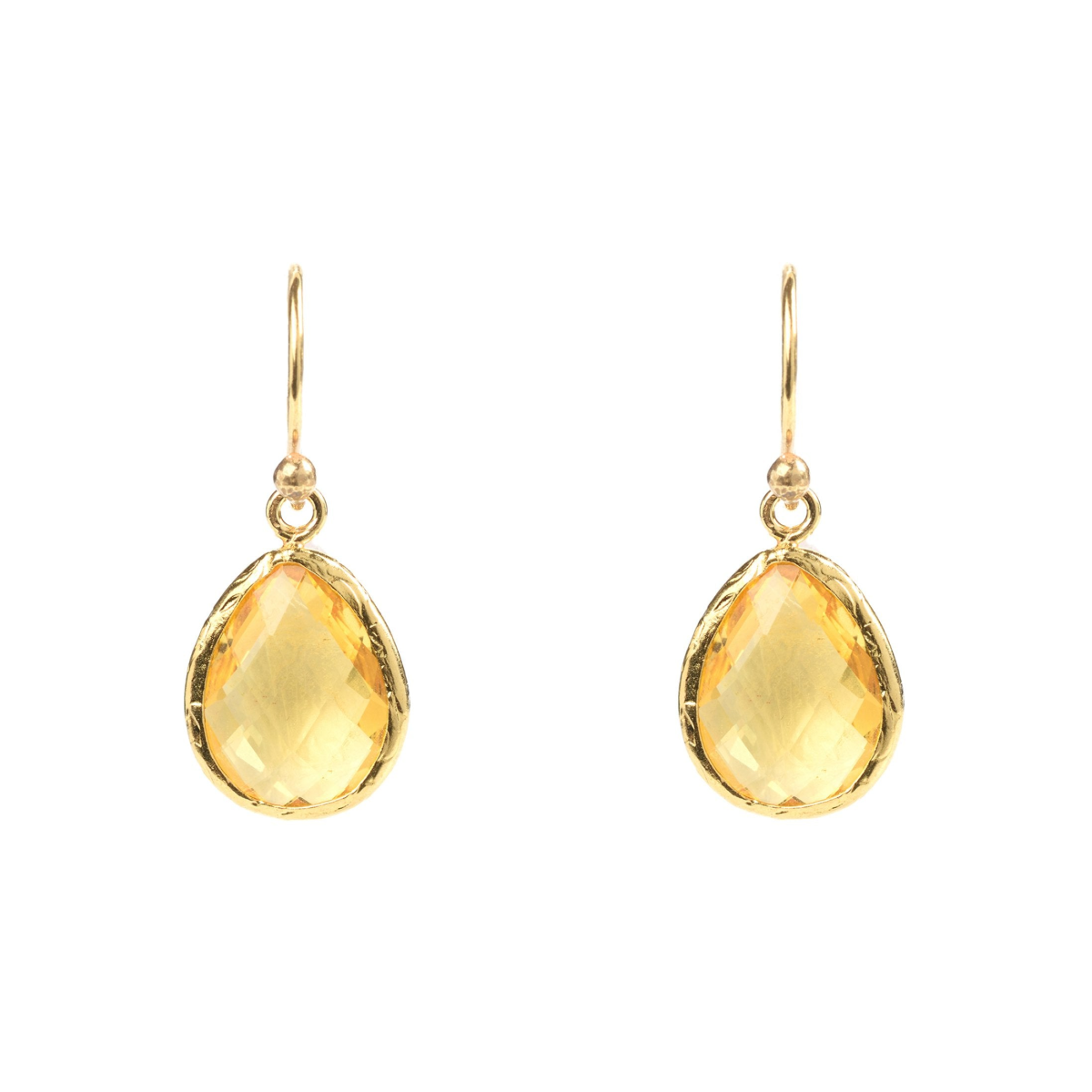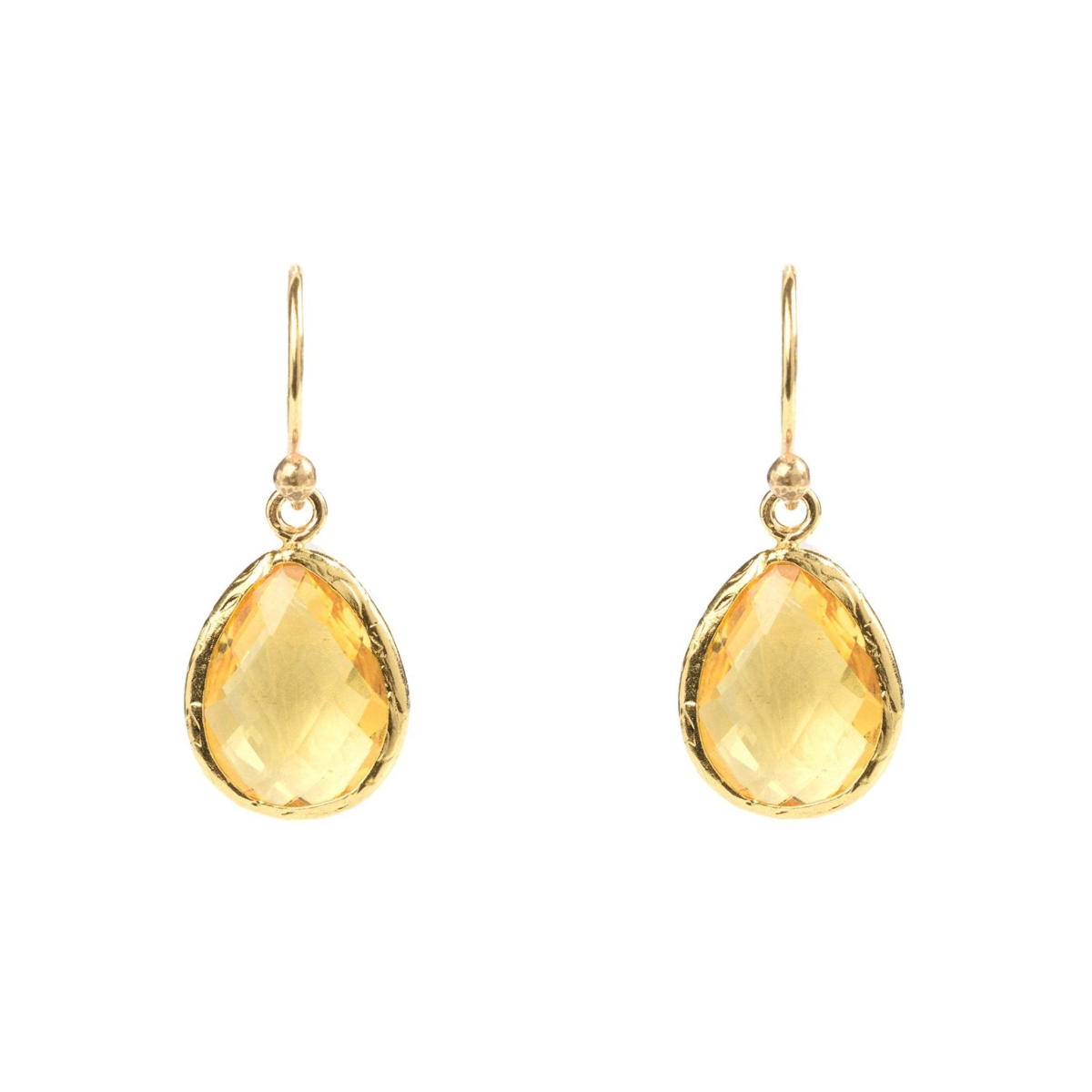 The classic teardrop shape is adorned with a beautiful yellow Citrine gemstone, making them perfect for adding a pop of colour to any outfit. Whether you're dressing up for a special occasion or simply want to elevate your everyday style, these earrings will do the trick.