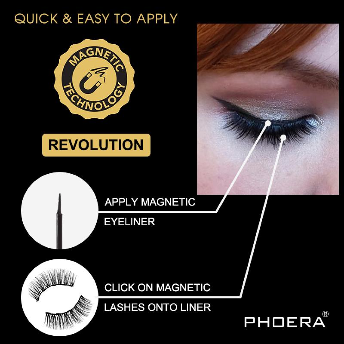 If you have struggled with applying your magnetic lashes in the past, PHOERA Black Magnetic Eyeliner lets you have beautiful eyelashes quickly, easily and painlessly. This product is your solution to wearing false lashes without glue!