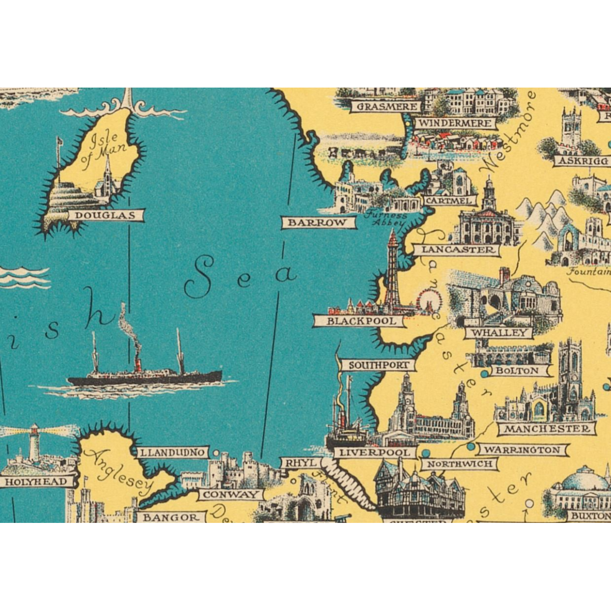A vintage map of the British Isles from a publication around 1939 by Ernest Dudley Chase. Beautifully illustrated drawings of numerous key architectural landmarks cover this map making for endless facination as you look around it, including England, Scotland, Wales and the whole of the island of Ireland.